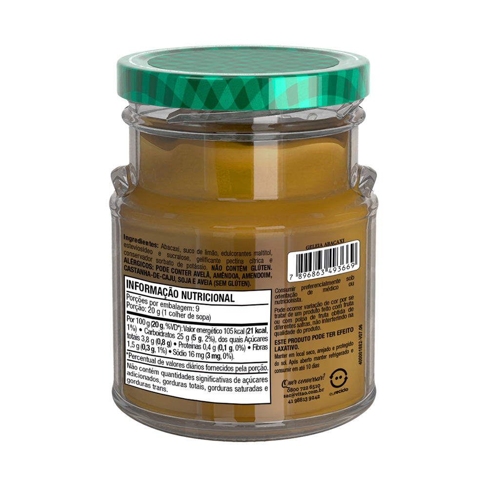 Geleia Abacaxi Zero Açúcar Vitao 180 g