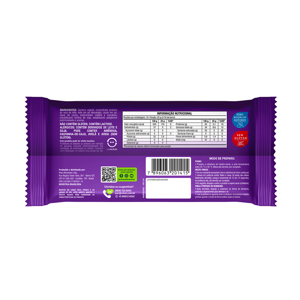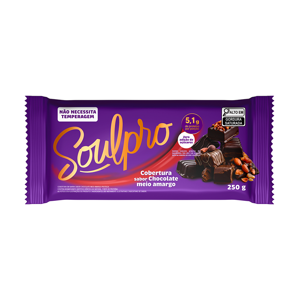Cobertura Sabor Chocolate Proteico Meio Amargo Zero Açúcar Soulpro 250 g