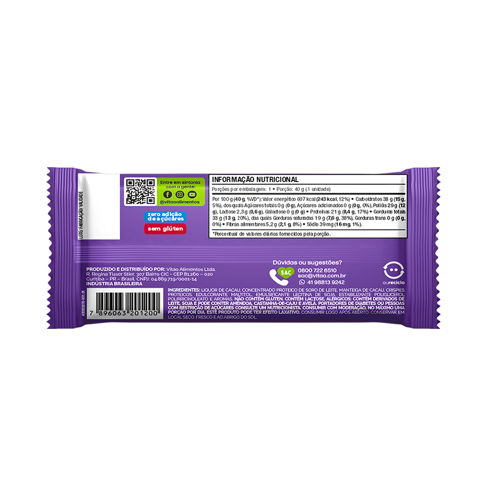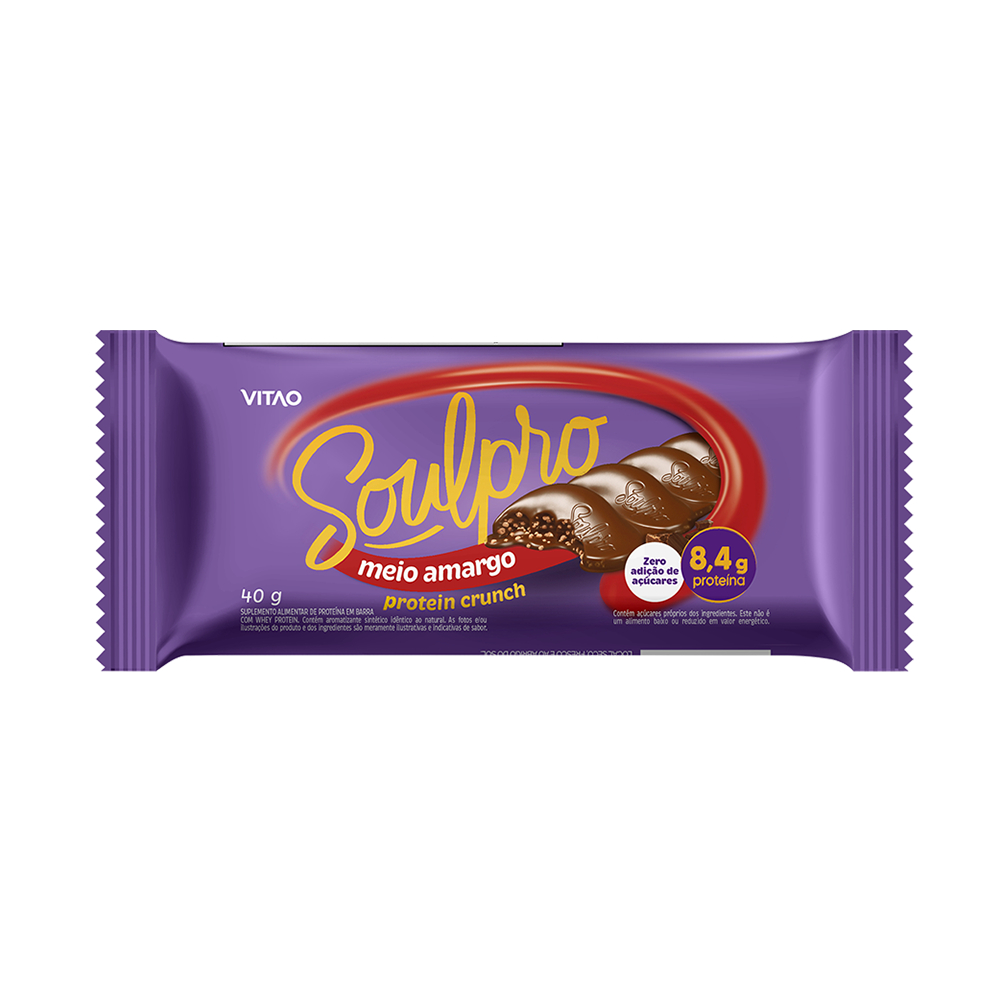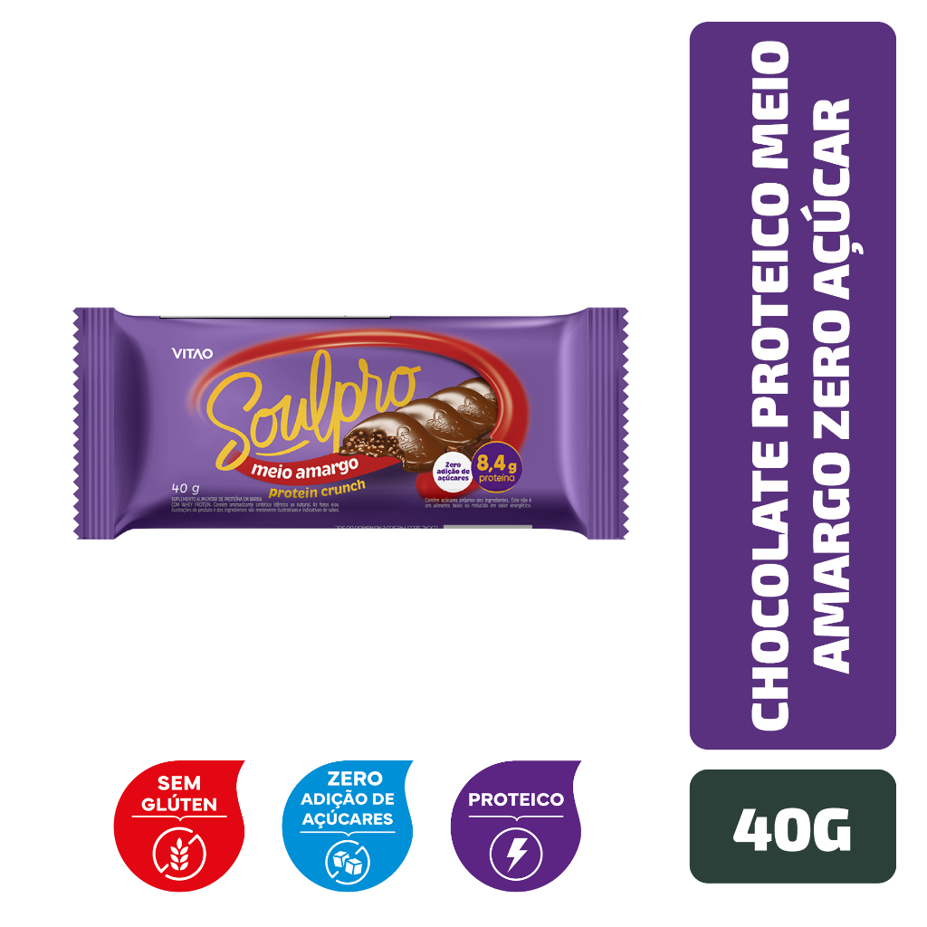 Chocolate Proteico Meio Amargo Zero Açúcar Soulpro 40 g