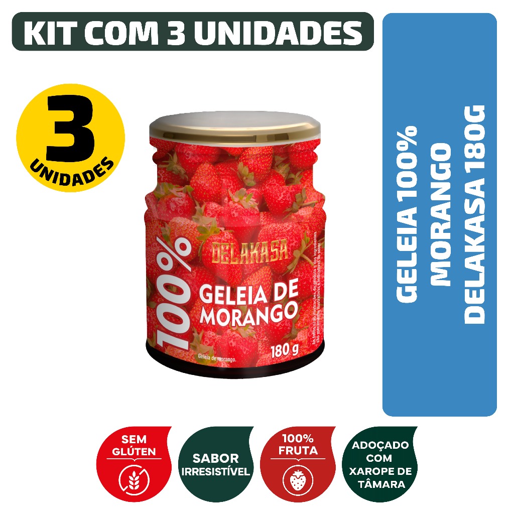 Kit Geleia 100% Morango Delakasa 180G - 3 Unidades