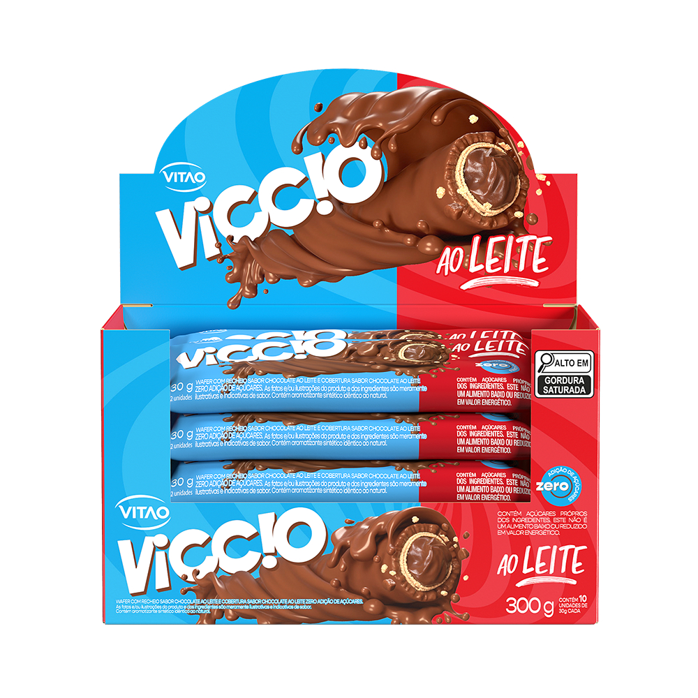 Kit Rolinho Chocolate Ao Leite Zero Açúcar Viccio 30G - 10 Unidades