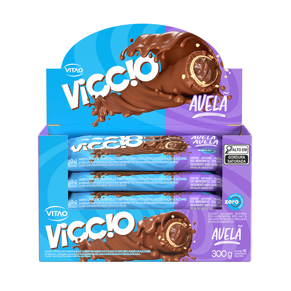 Kit Rolinho Chocolate Avelã Zero Açúcar Viccio 30G - 10 Unidades