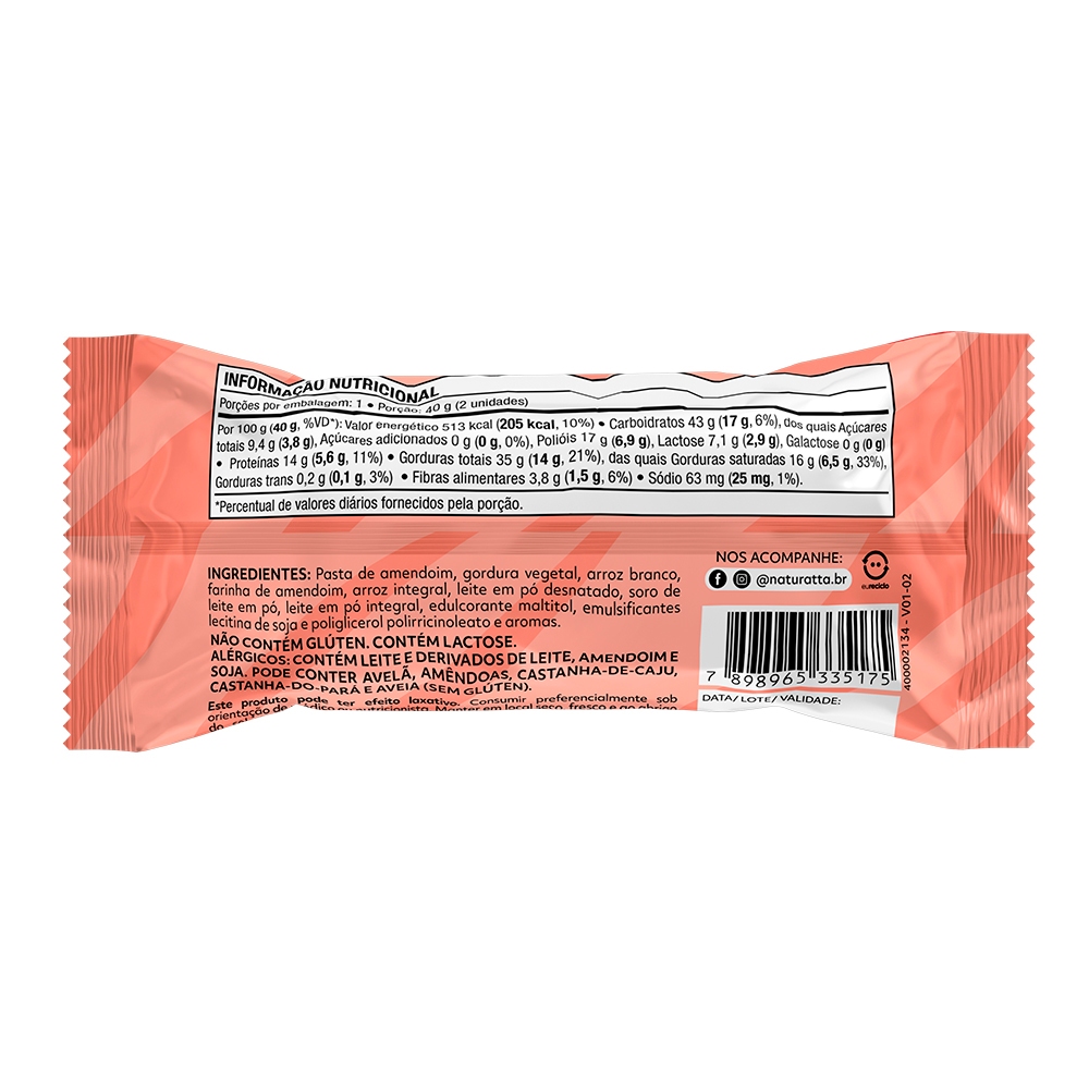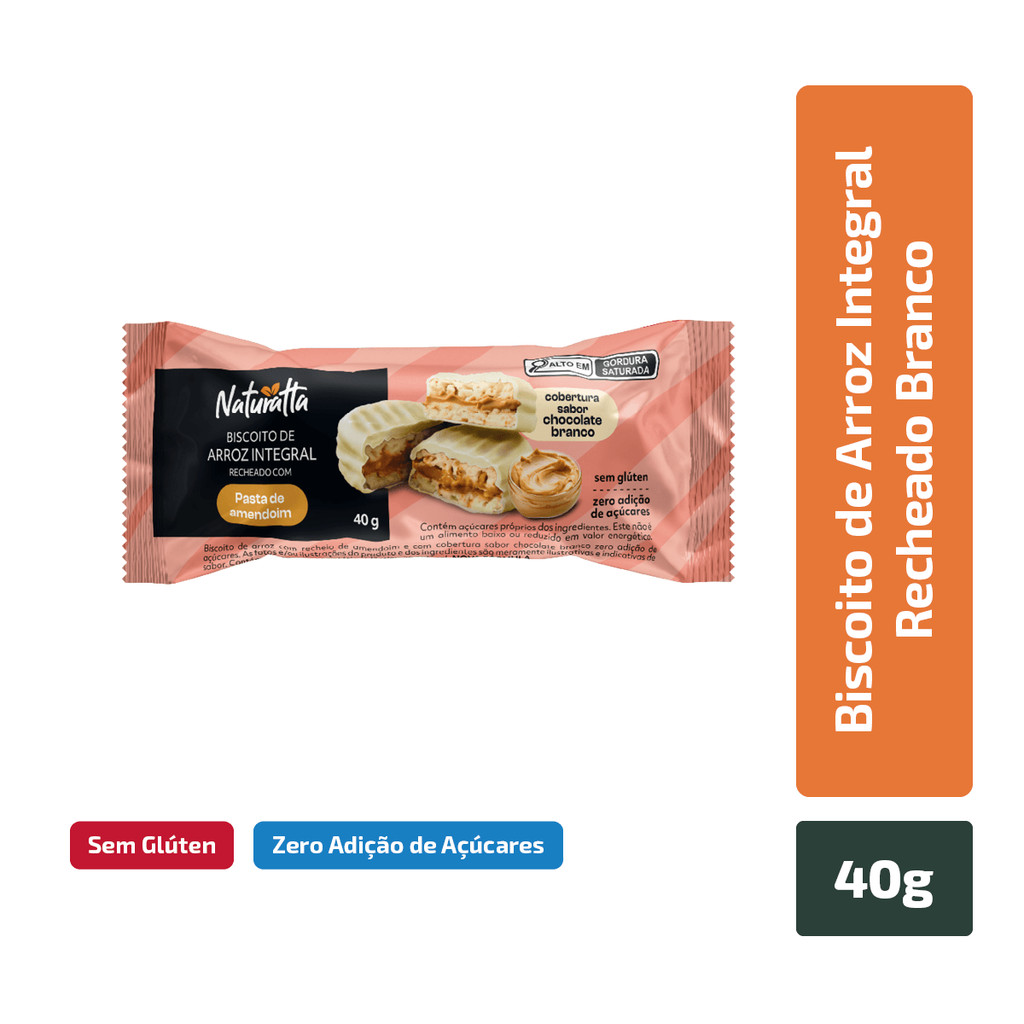 Biscoito Arroz Amendoim Coberto Branco Zero Açúcar Naturatta 40 g