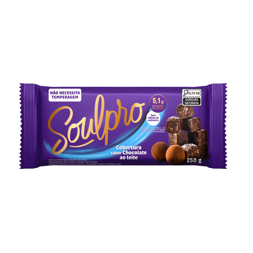 Cobertura Sabor Chocolate Proteico Ao Leite Zero Açúcar Soulpro 250G