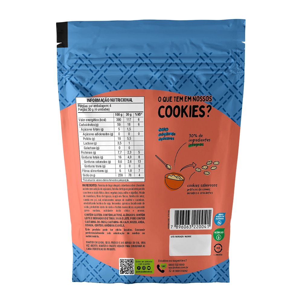Cookies Maçã e Canela Coberto Zero Açúcar Vitao 120 g