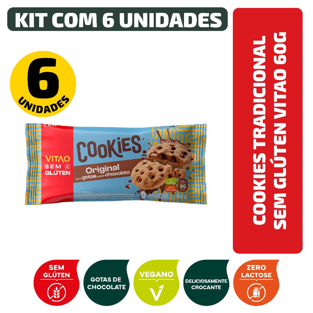 Kit Cookies Tradicional Sem Glúten Vitao 60G - 6 Unidades