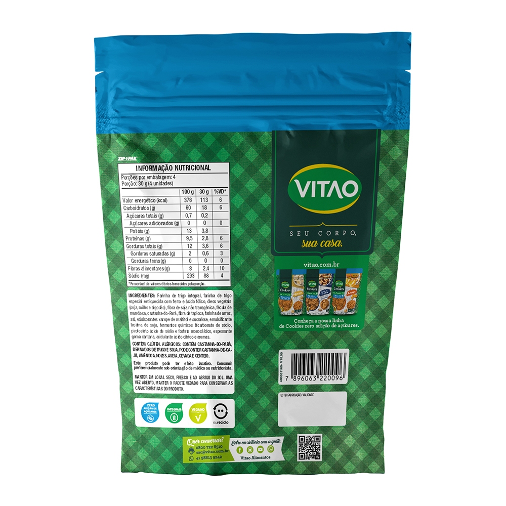 Cookies Castanha-do-Pará Integral Zero Açúcar Vitao 120 g