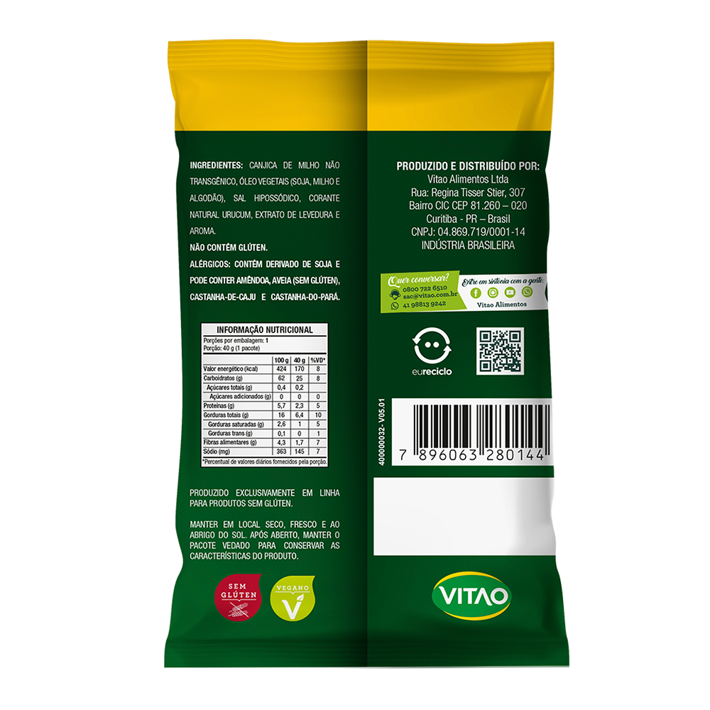 Kit Snack Queijo Sem Glúten Vitao 40G - 6 Unidades