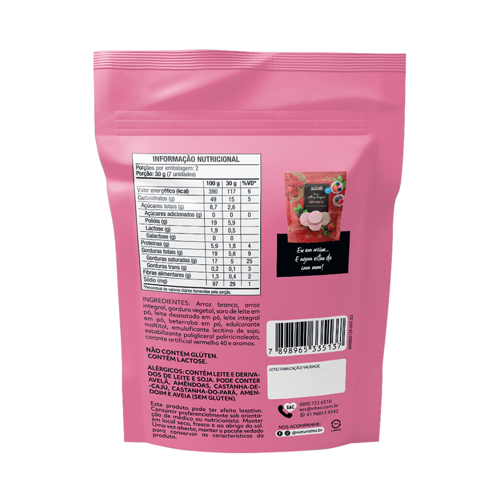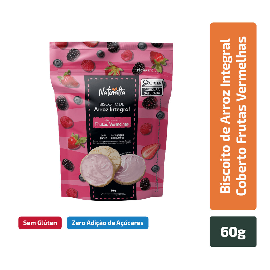 Biscoito Arroz Frutas Vermelhas Zero Açúcar Naturatta 60 g