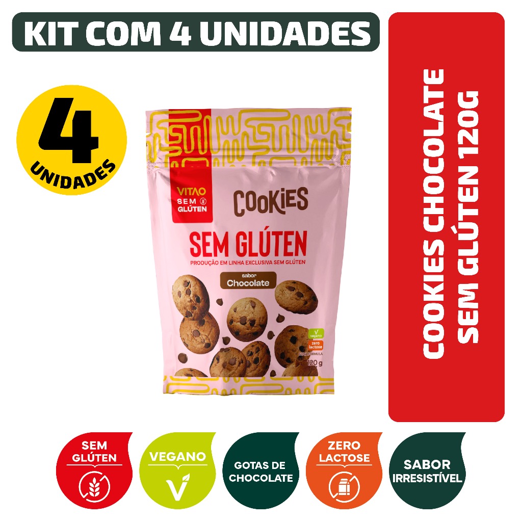 Kit Cookies Chocolate Sem Glúten 120G - 4 Unidades