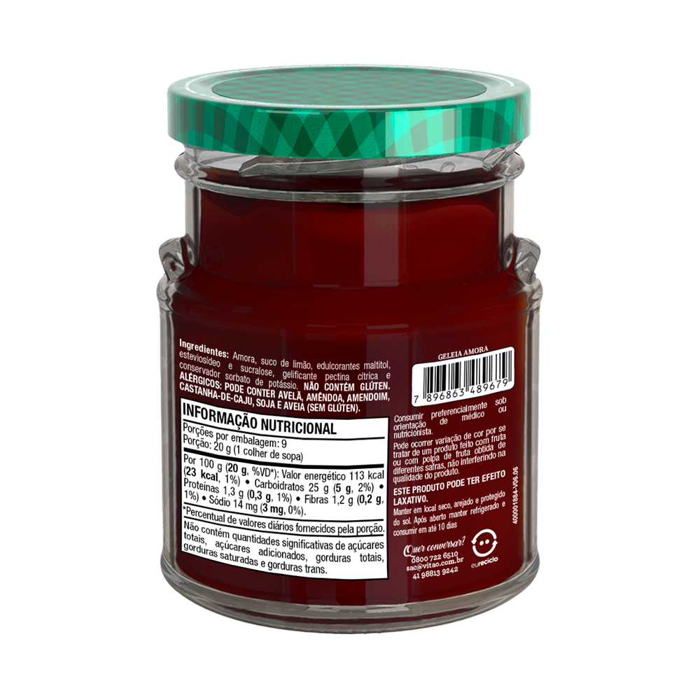 Geleia Amora Zero Açúcar Vitao 180 g