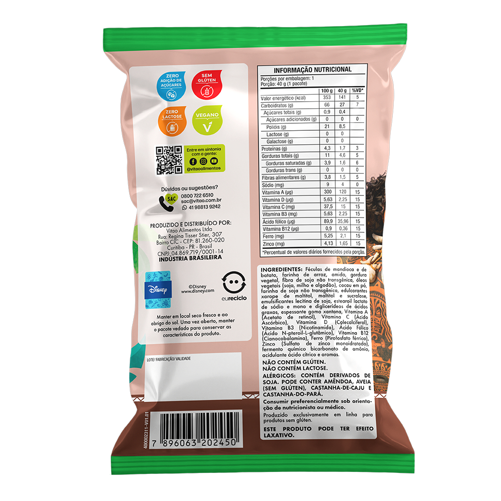 Biscoito Chocolate Moana Sem Glúten Disney 40g