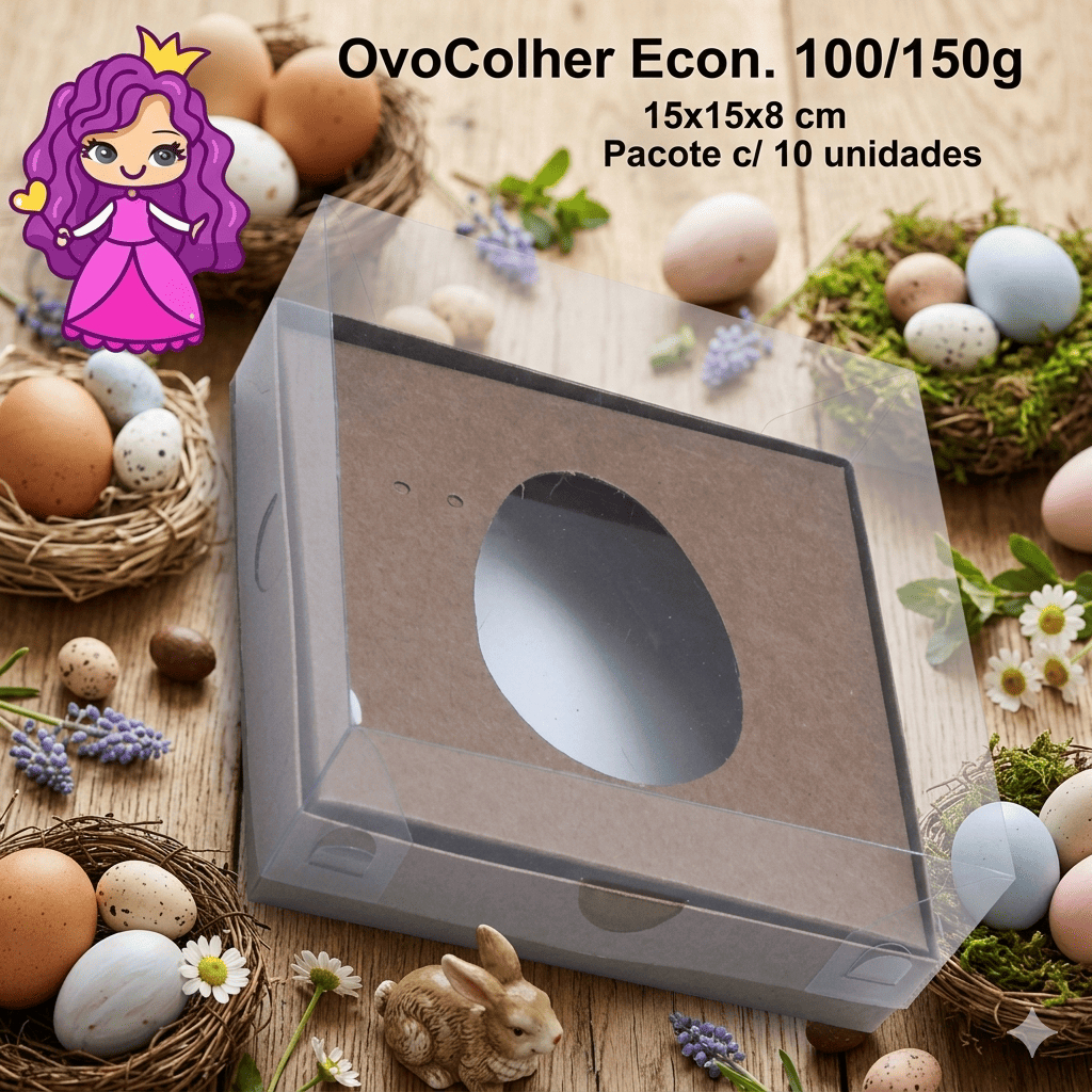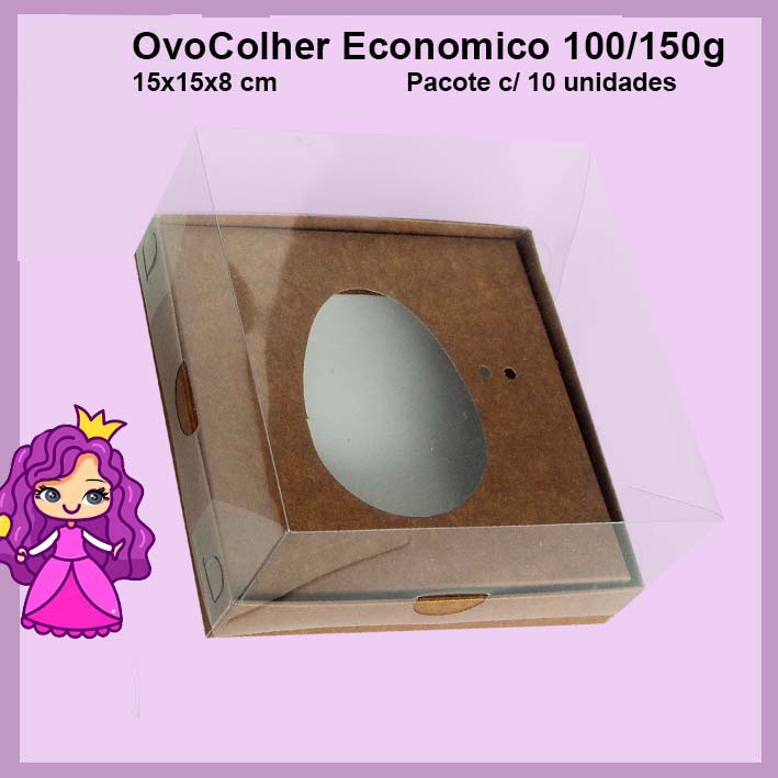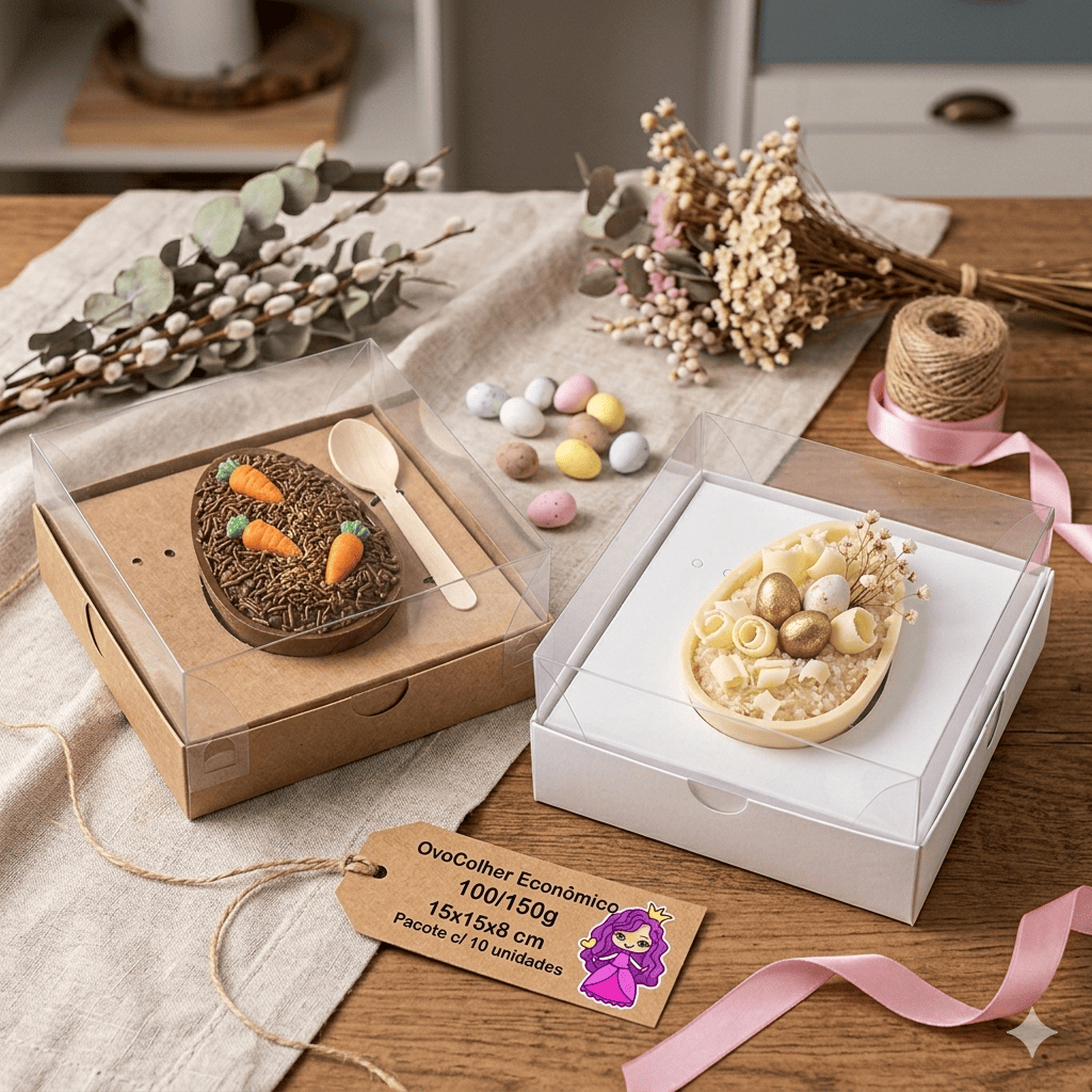 Embalagem para Ovo de Colher 100/150g Linha Econômica em papel Kraft e Branco - 08x15x15cm - Pacote com 10 unidades