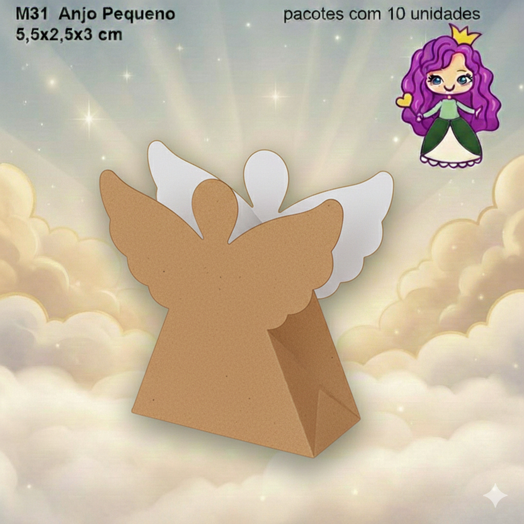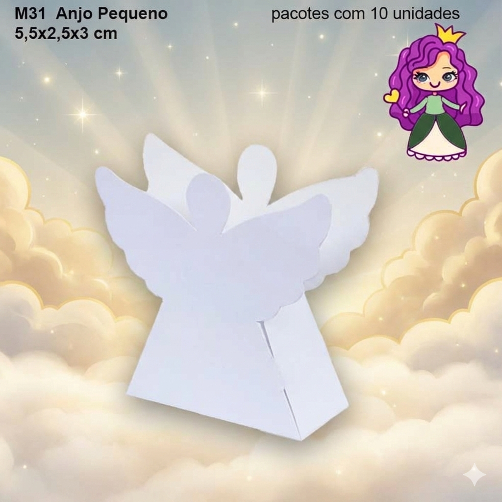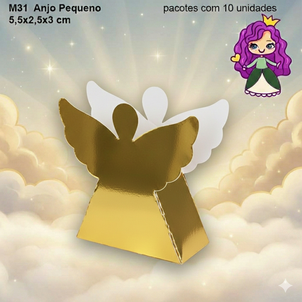 Embalagem Anjo Grande e Pequena em papel Laminado Colorido - Tamanho Grande: 08x3,5x04 / Tamanho Pequeno: 5,5x2,5x03