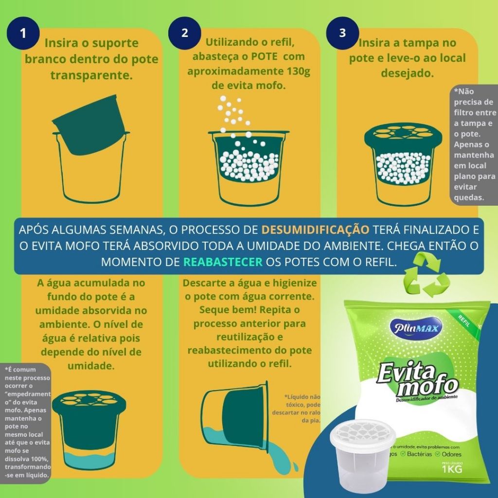 1kg + 5 Potes Cloreto De Calcio - Anti Mofo Refil