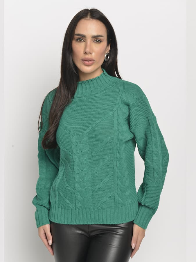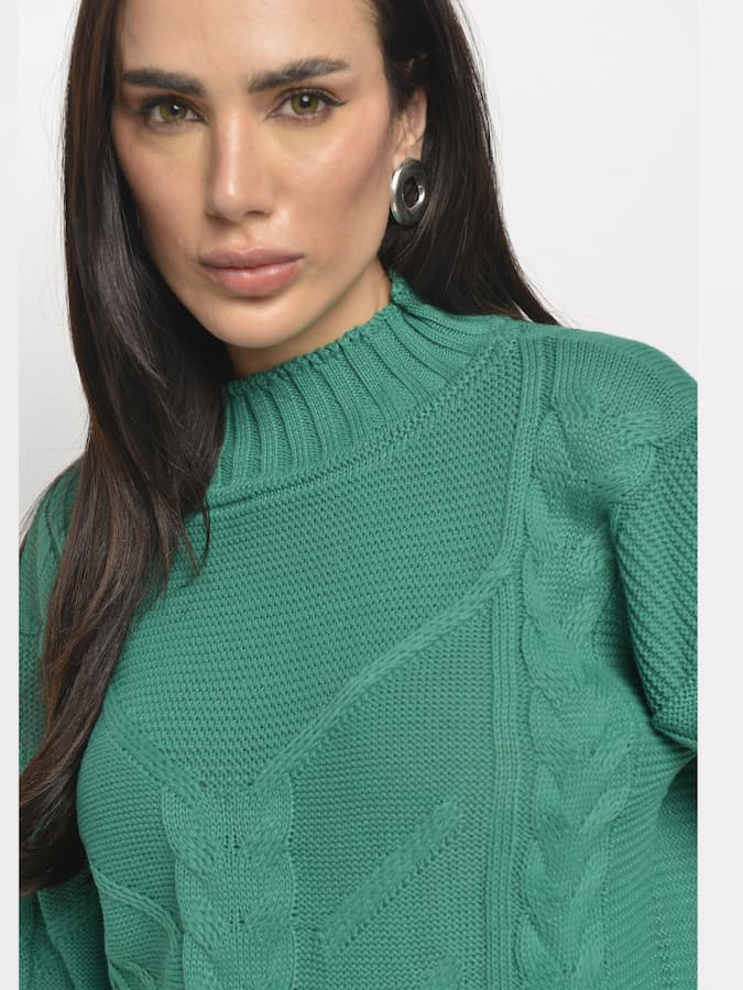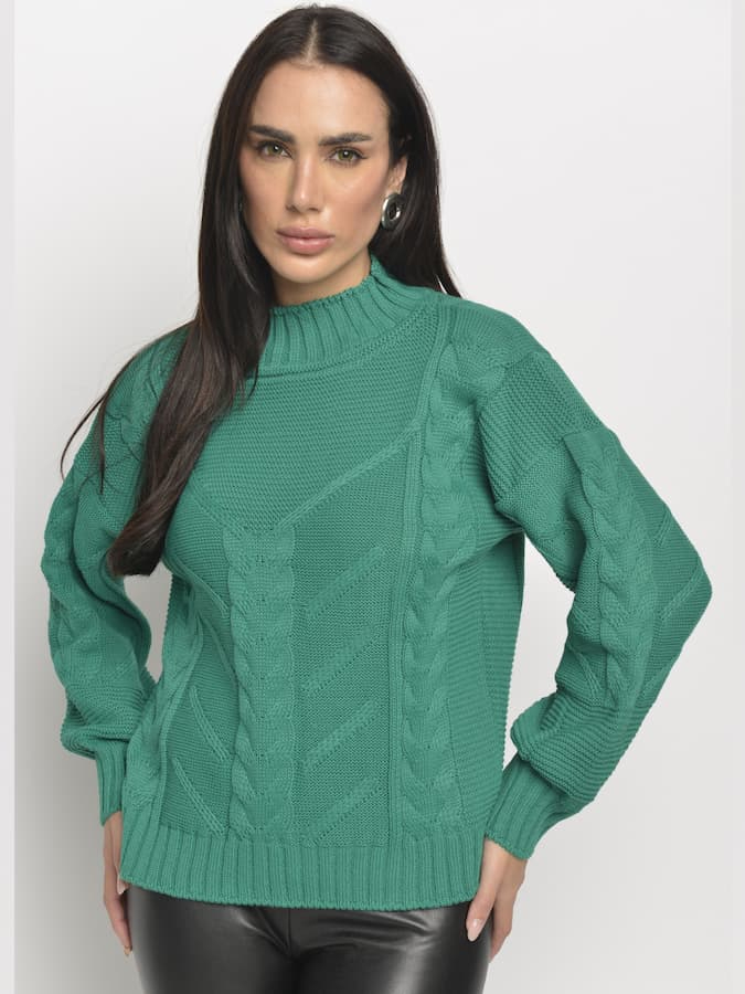 Blusa de Frio Inverno 3 Trança Tricô Gola Redonda Manga Longa Moda lançamento