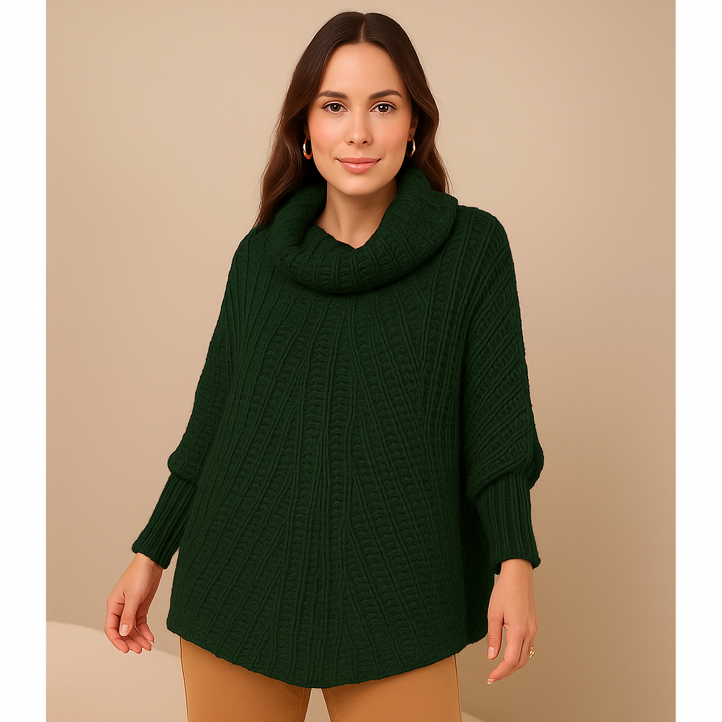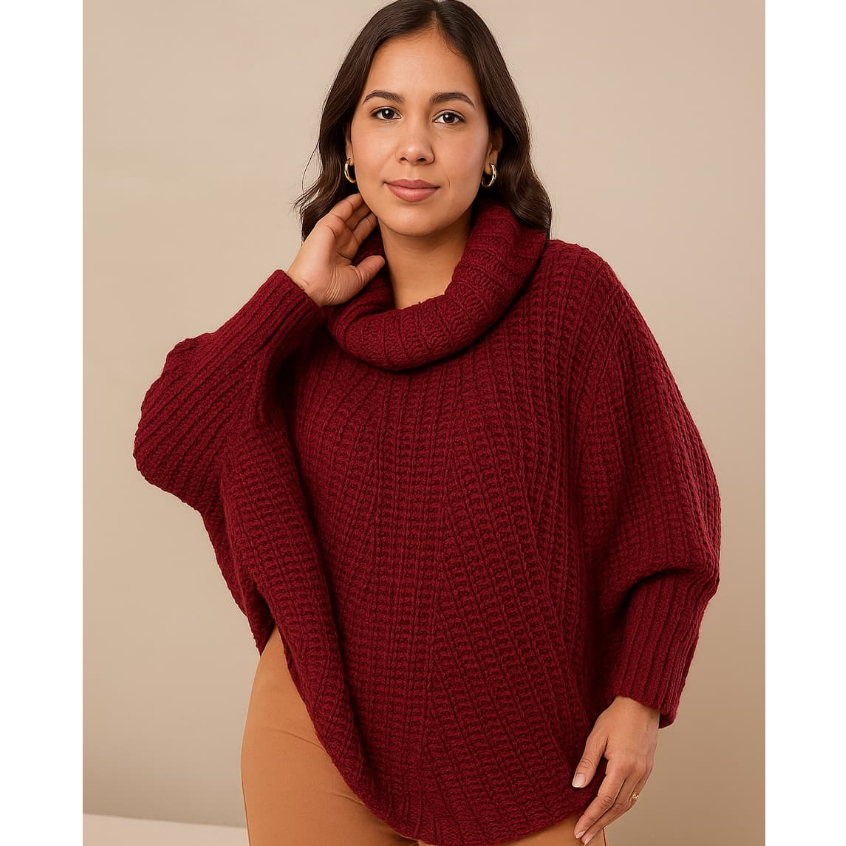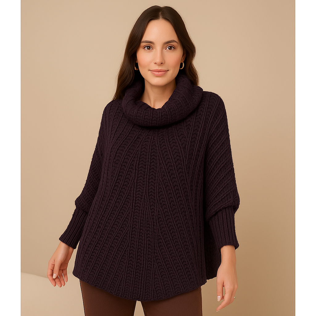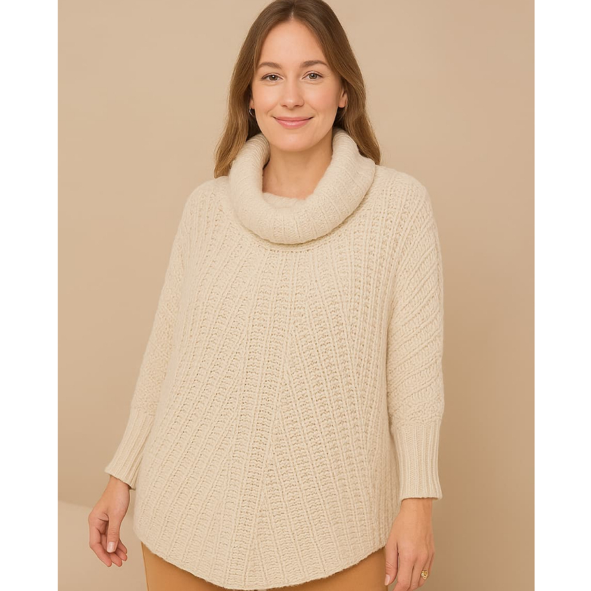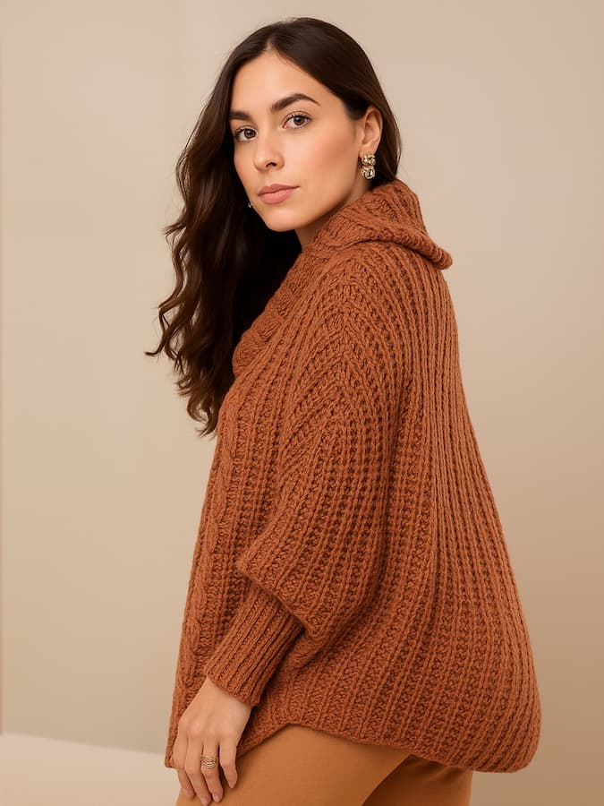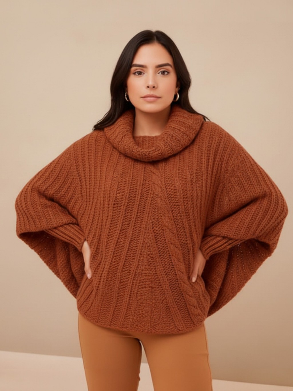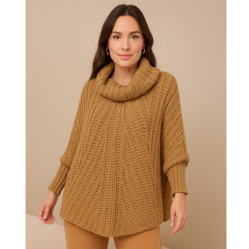 Poncho Gola Alta Feminino Em Tranças Despojado Outono Inverno Fio Premium Moda Atual