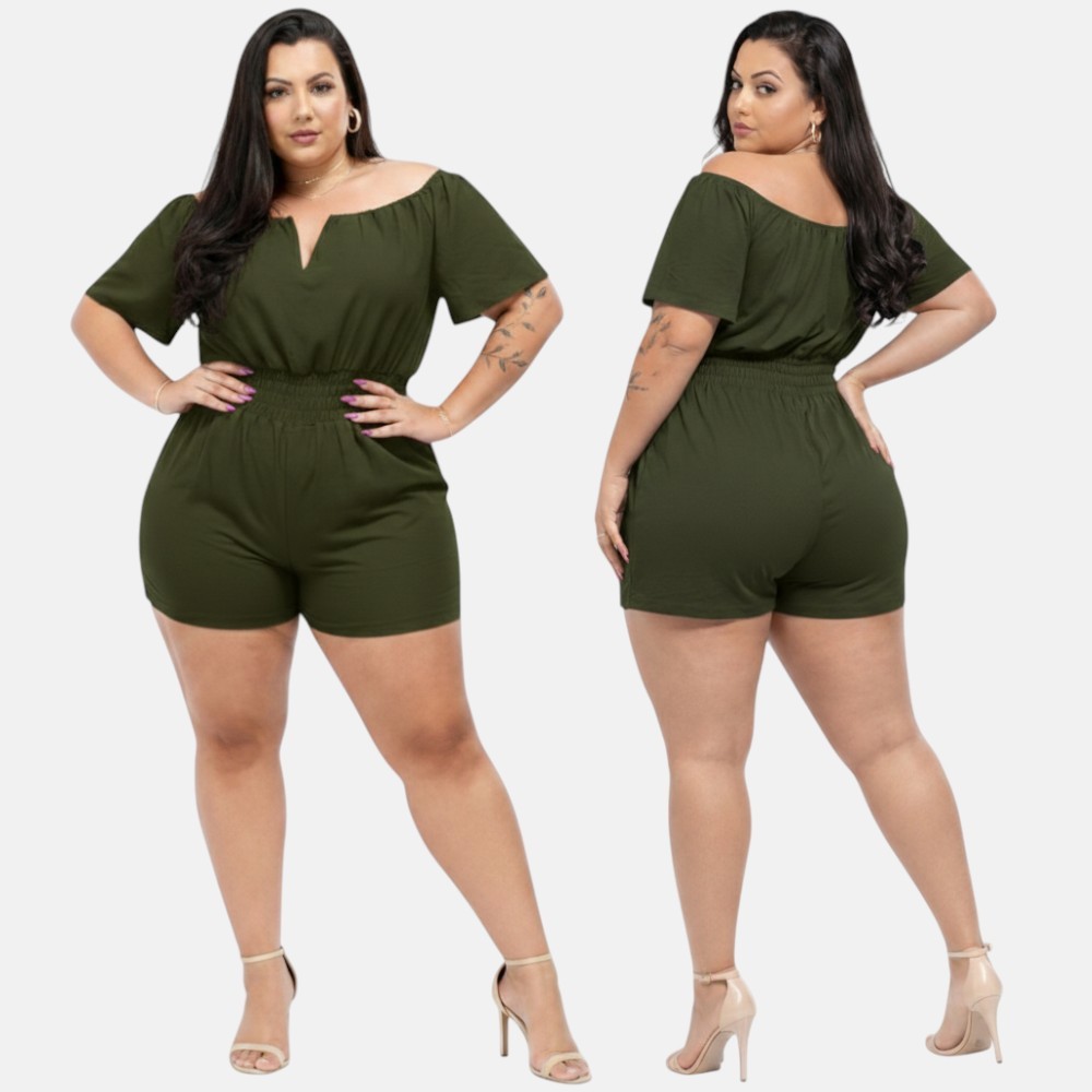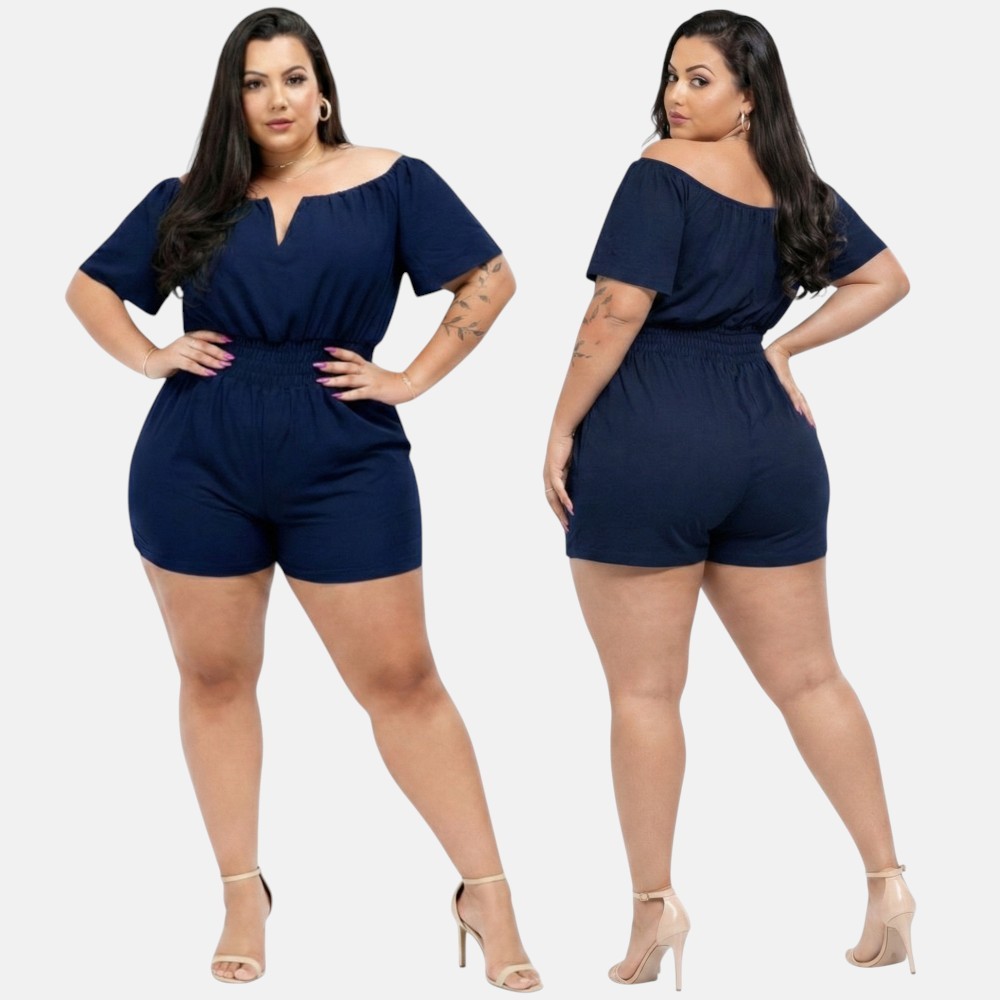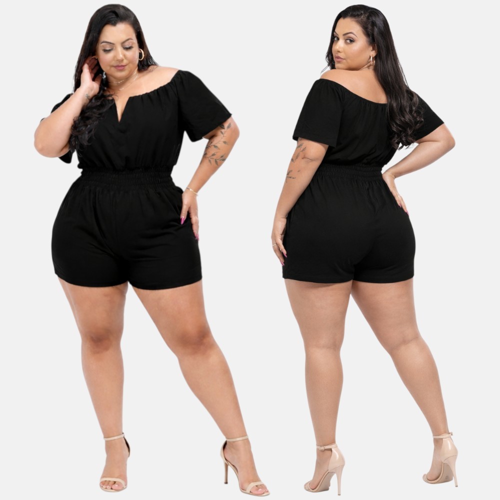 Macaquinho Plus Size Curto Decotado Cintura Alta Elegante Festa Luxo 46 ao 56