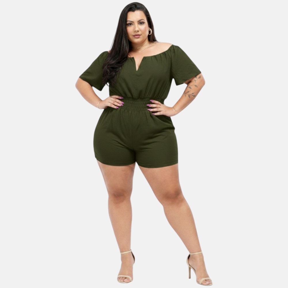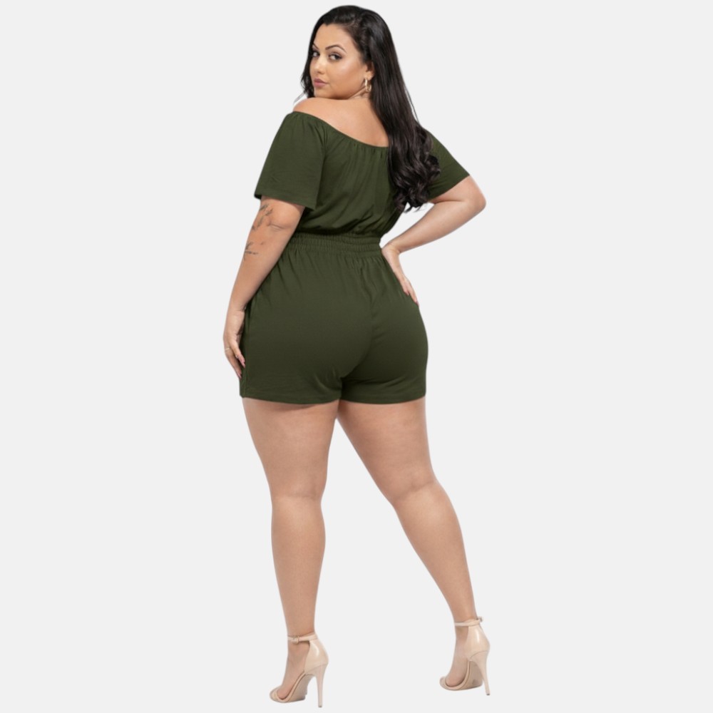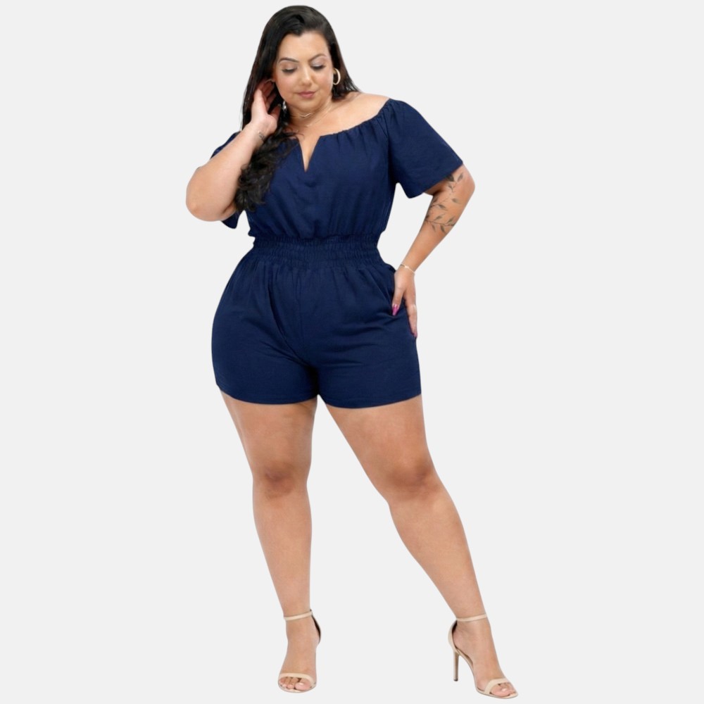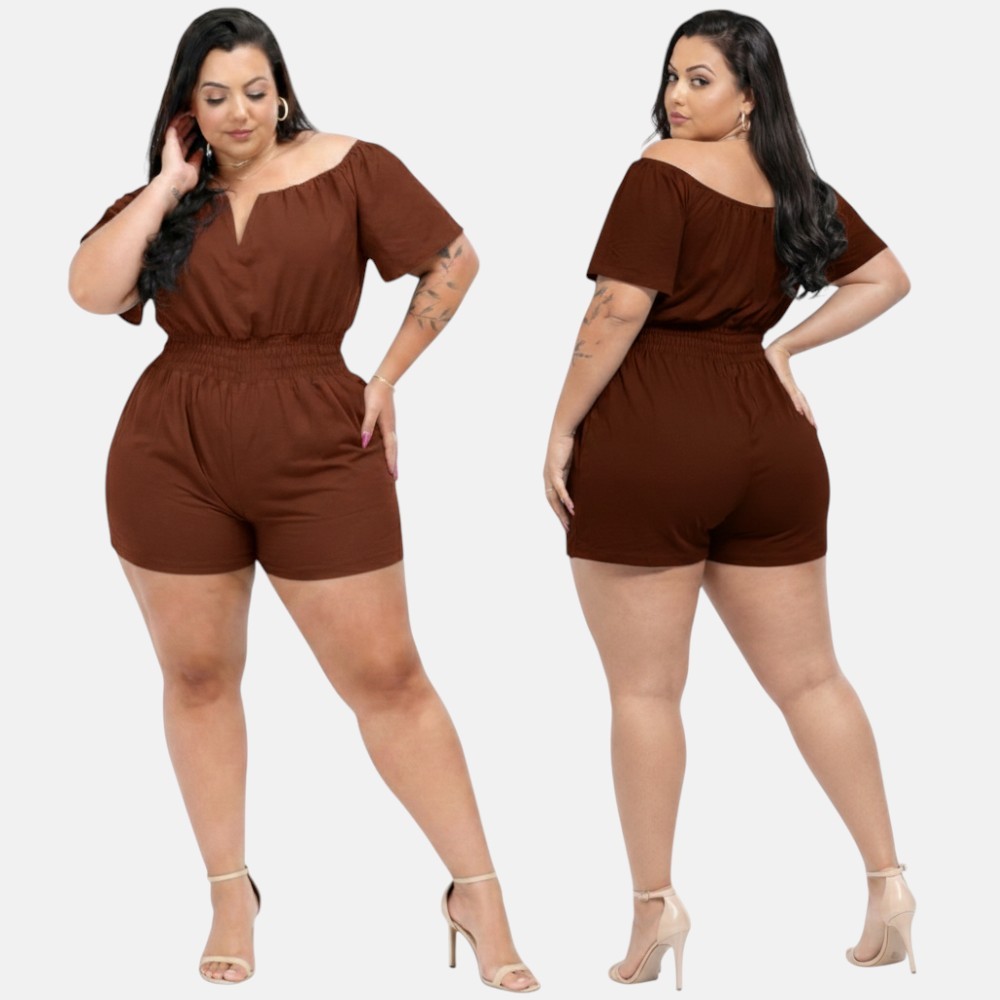 Macaquinho Plus Size Curto Decotado Cintura Alta Elegante Festa Luxo 46 ao 56
