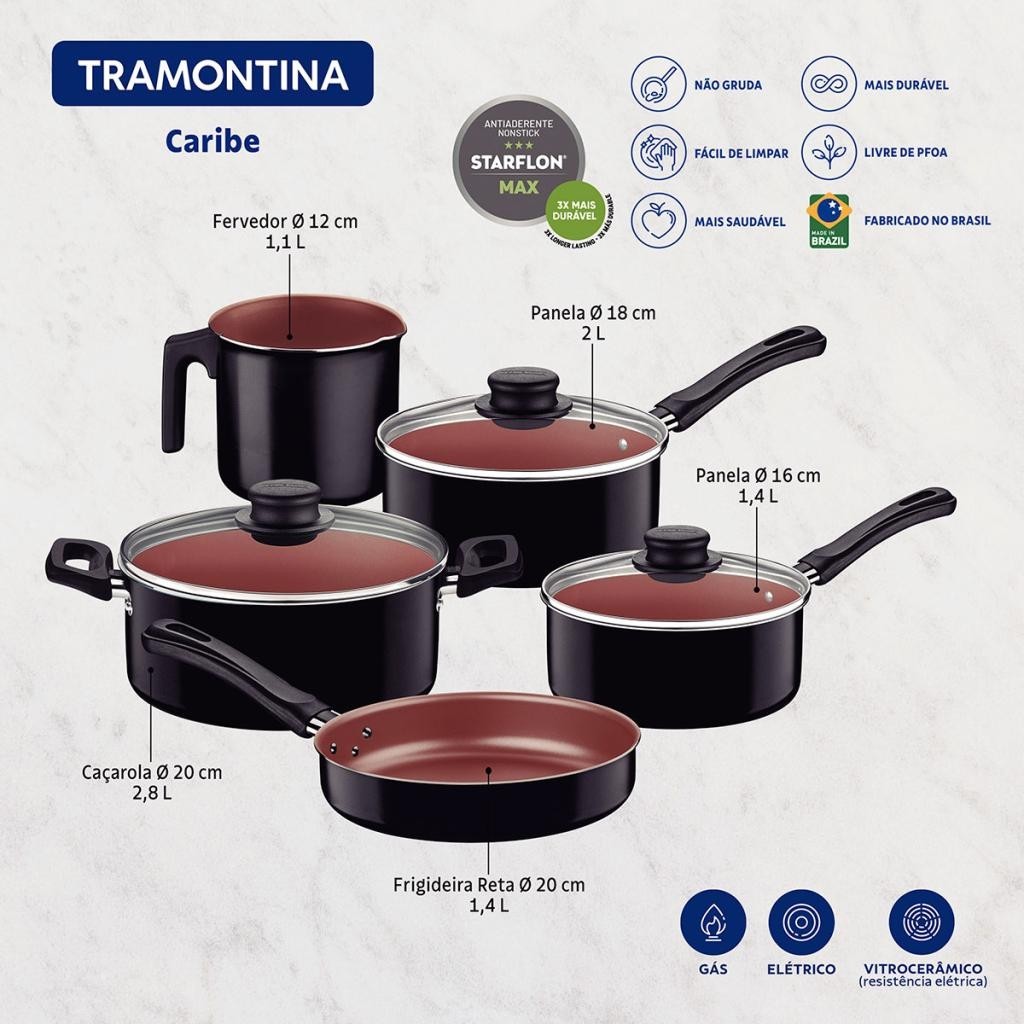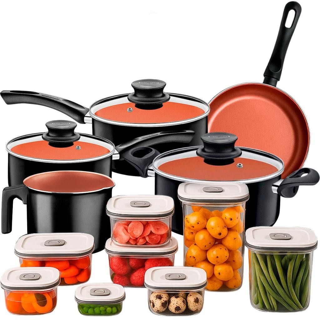 Conjunto de Panelas Tramontina Caribe Preto com Jogo de Potes Herméticos Electrolux - 13 Peças
