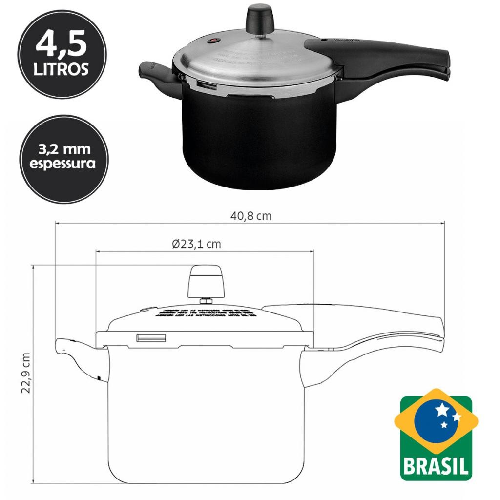 Panela de Pressão 4,5L Tramontina Vancouver Effect em Alumínio Antiaderente Preta