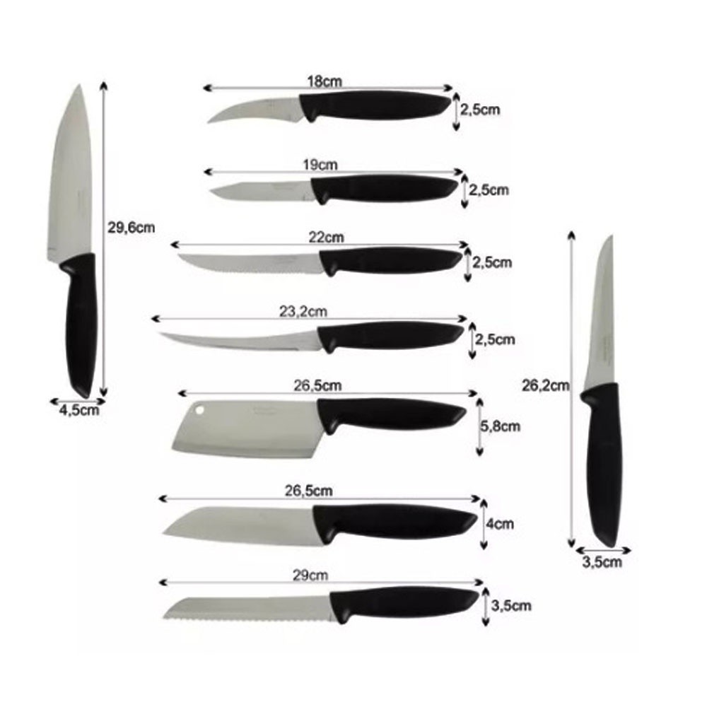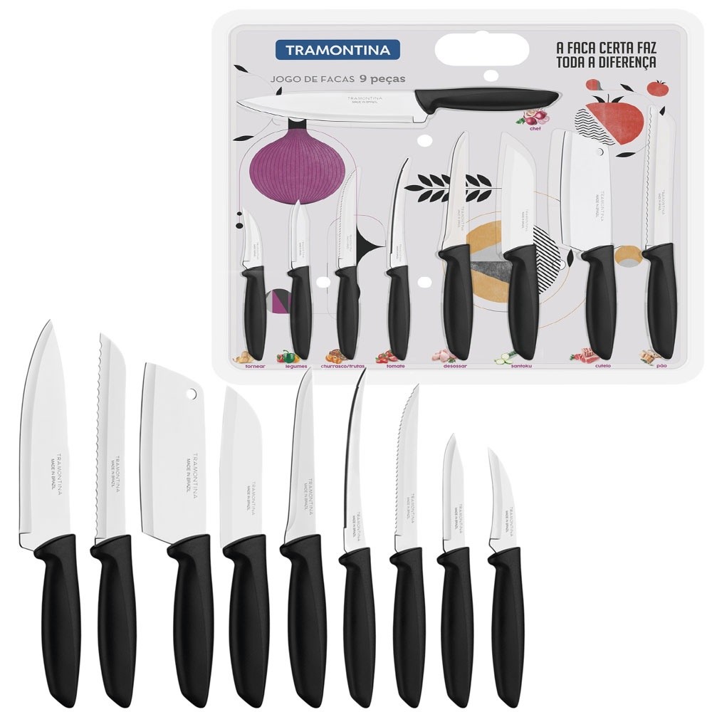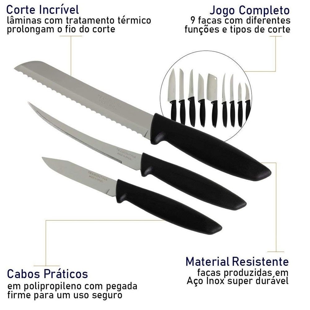 Jogo de Facas Tramontina Plenus com Lâminas em Aço Inox e Cabos de Polipropileno Preto 9 Peças