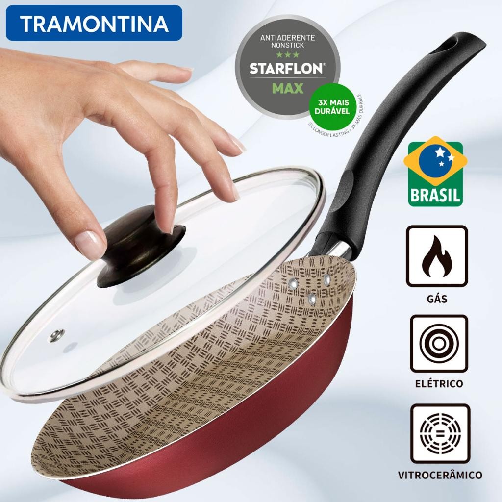 Frigideira com Tampa de Vidro Tramontina Turim 20cm em Alumínio Antiaderente Vermelho 0,8 L