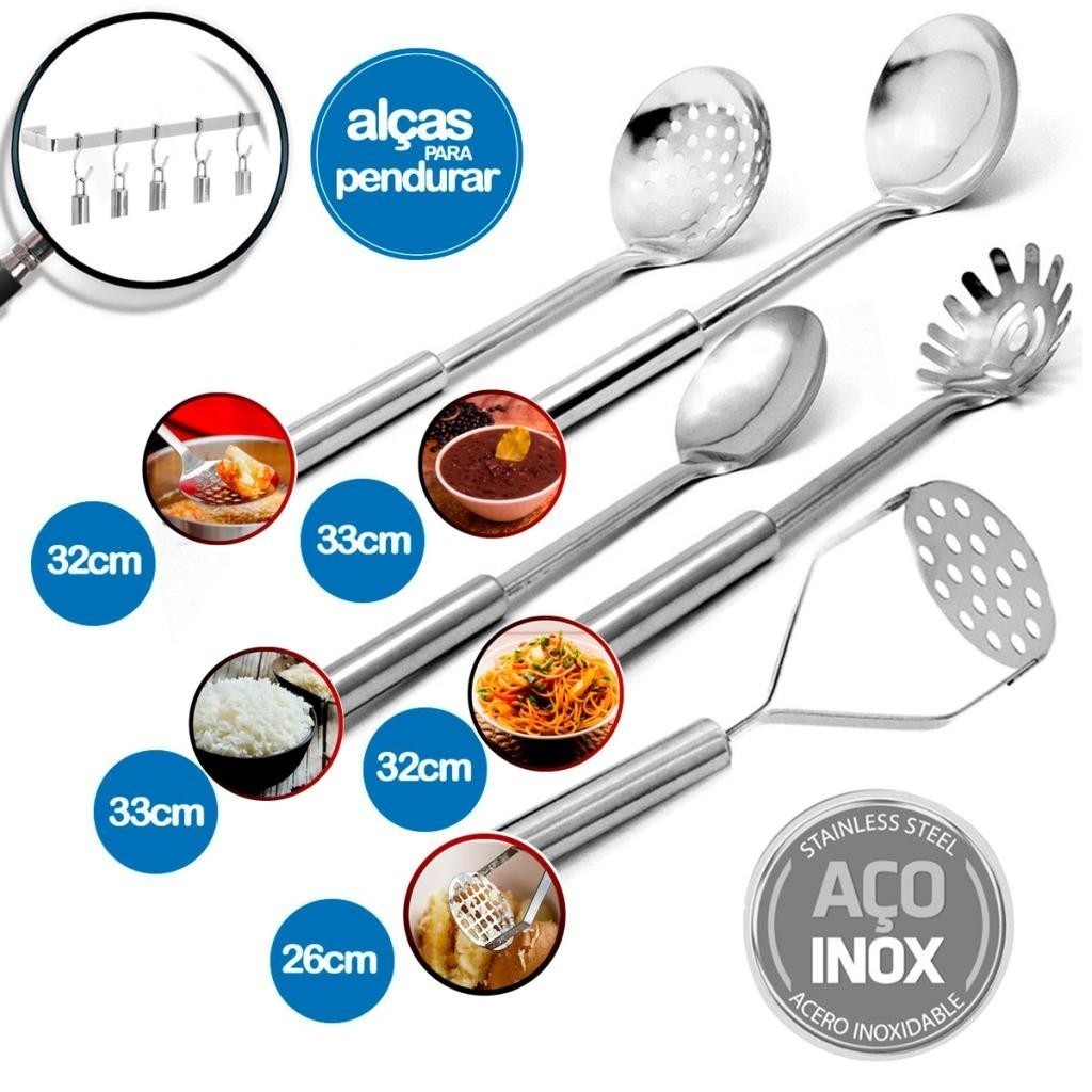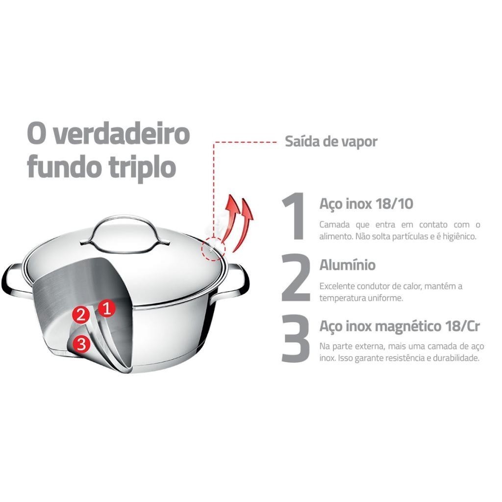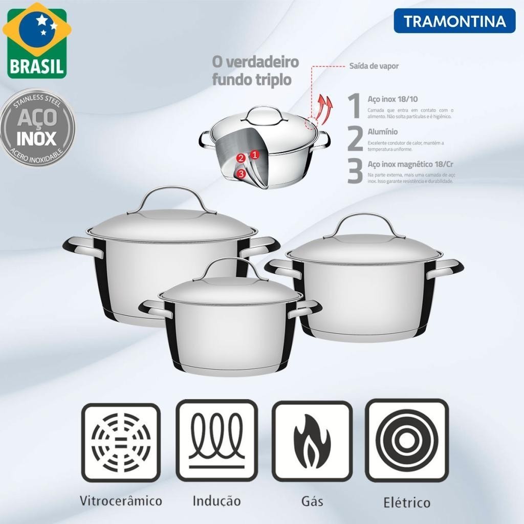 Conjunto de Caçarolas Tramontina Allegra em Aço Inox e Indução 3 pçs com Utensílios em Inox 5 pçs