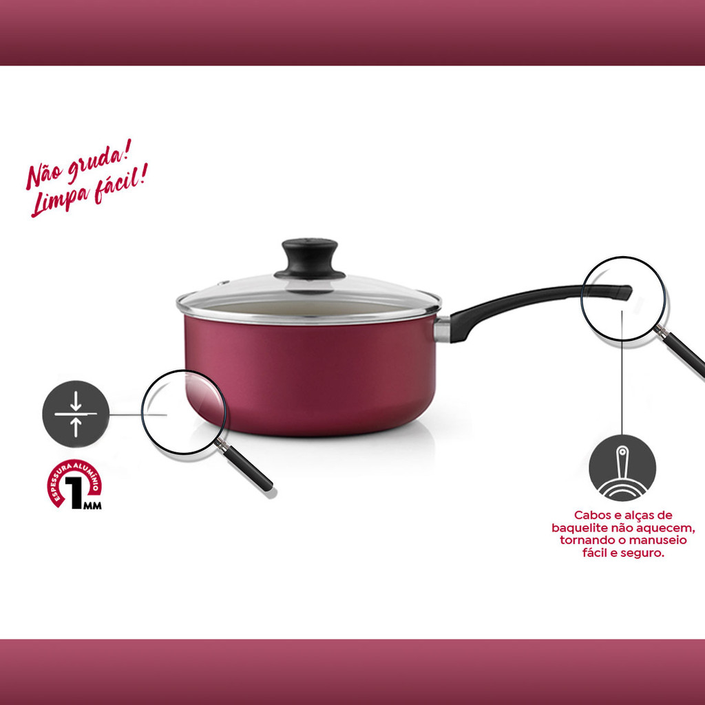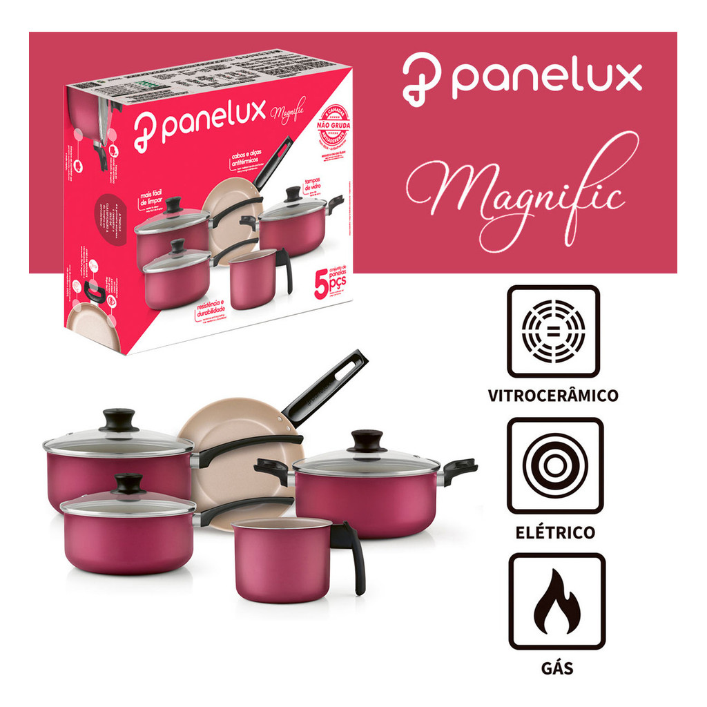 Jogo De Panelas Alumínio Antiaderente Panelux Cereja 5 Peças