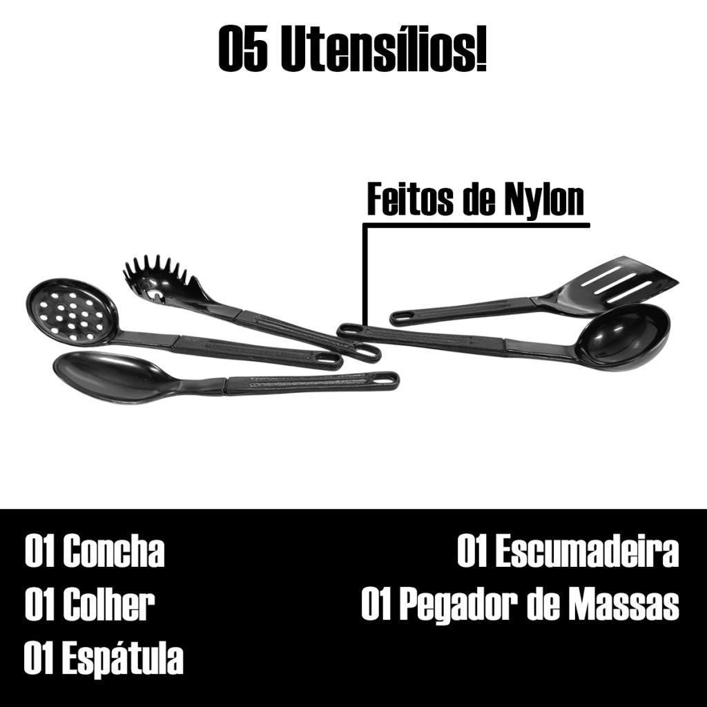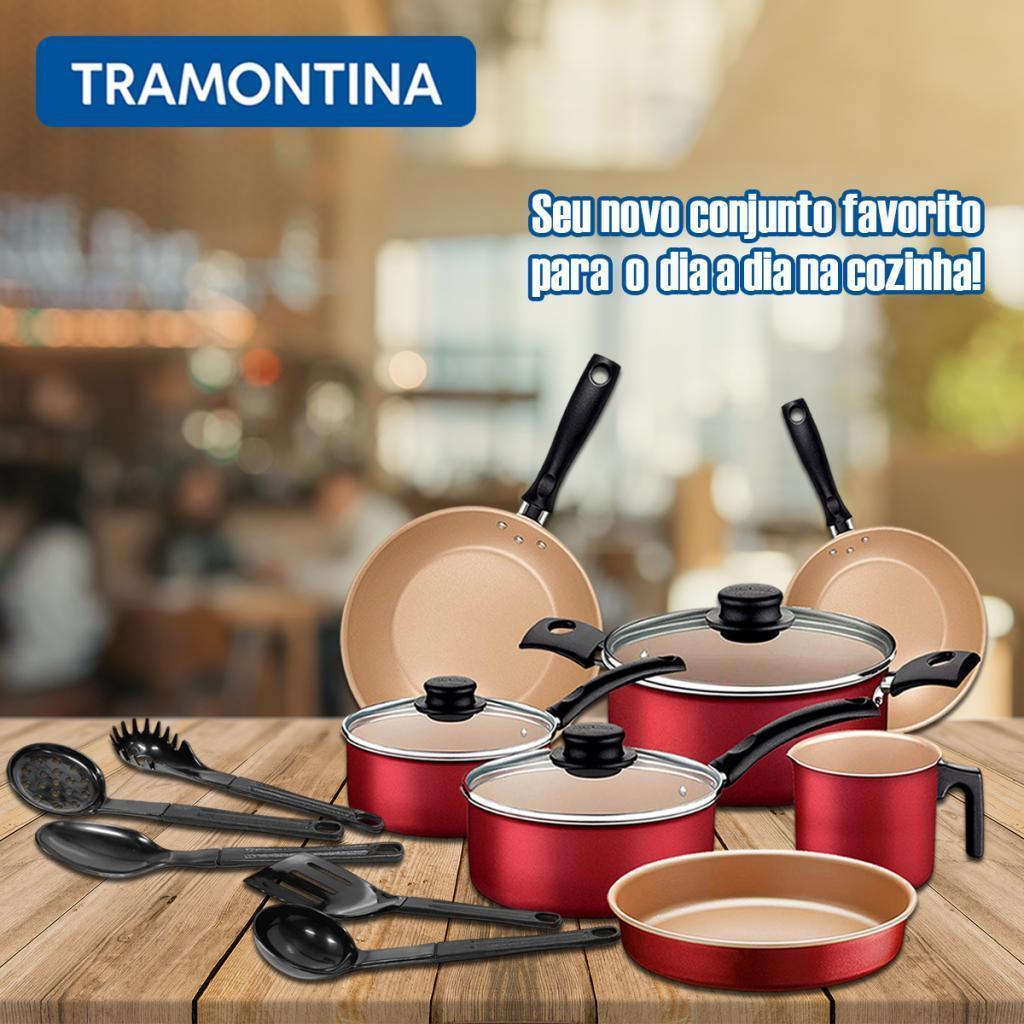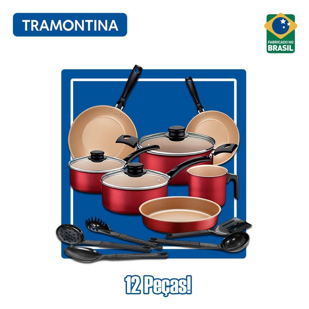 Jogo de Panelas Tramontina Turim com Assadeira 7 Peças Vermelho com Kit de Utensílios Preto 12 Peças