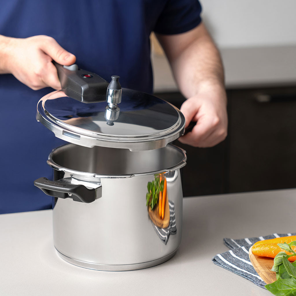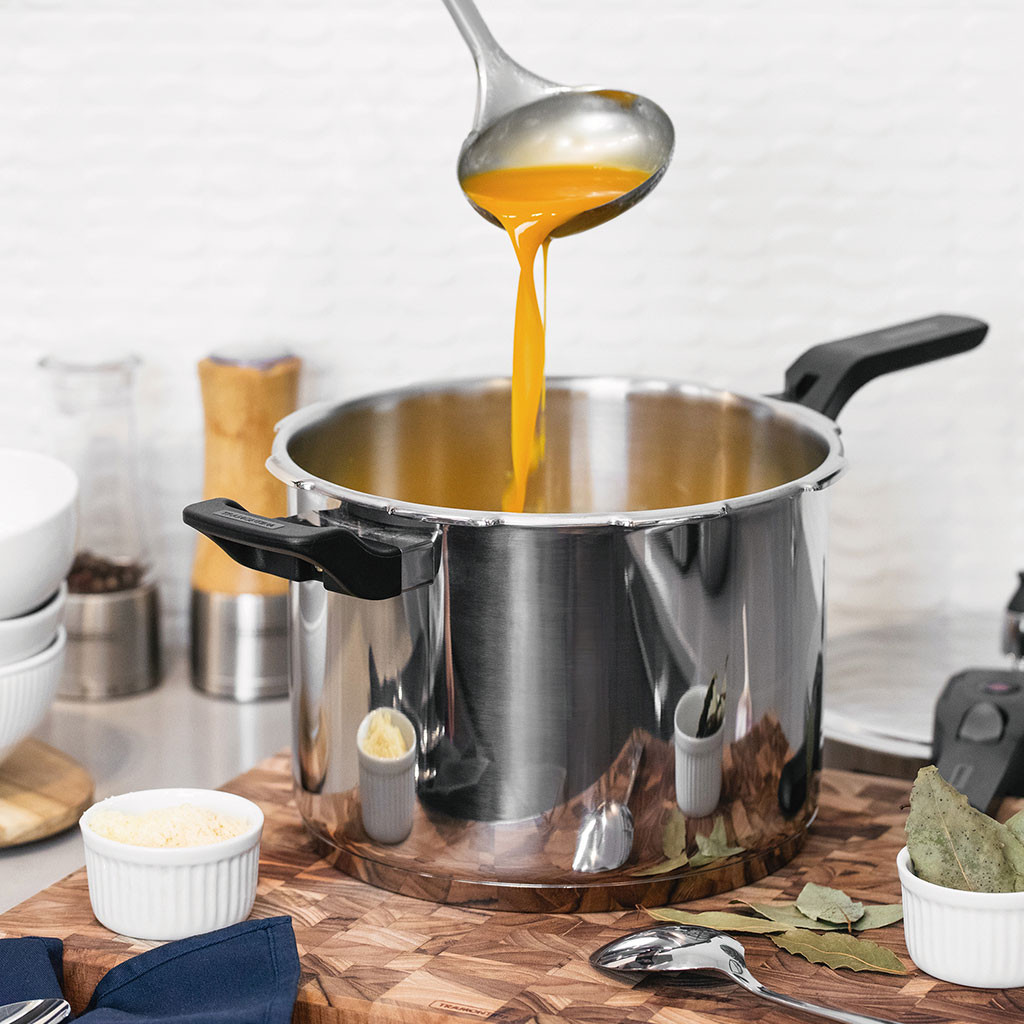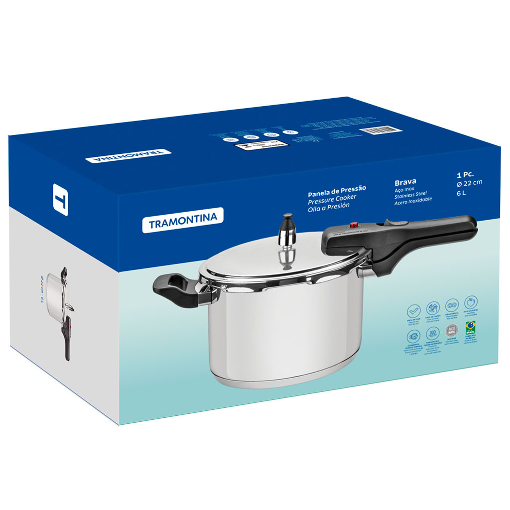 Panela de Pressão Tramontina Brava 6 litros em Aço Inox com Fundo Triplo 22 cm