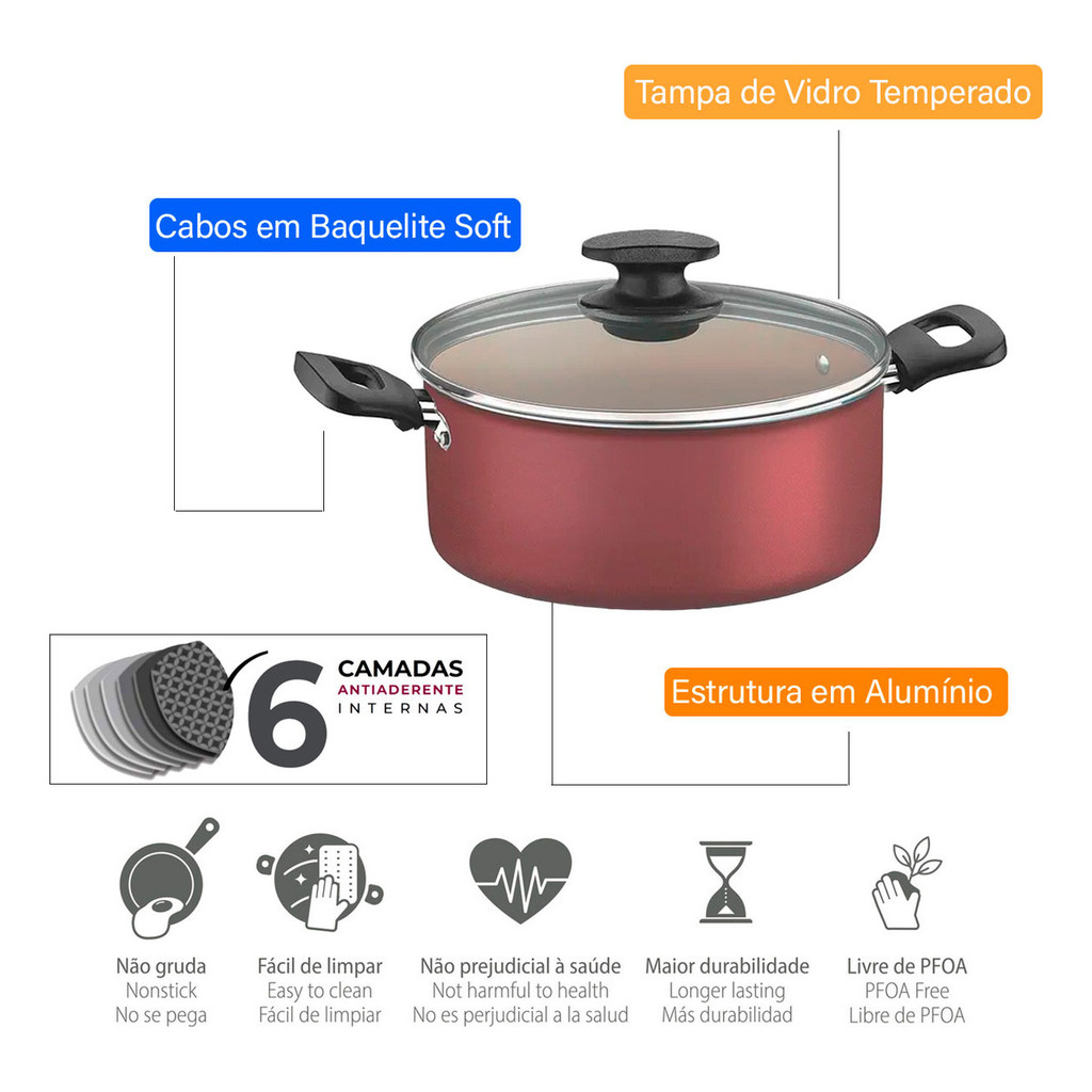Caçarola 20 Cm Em Alumínio Com Antiaderente 2,3 Litros