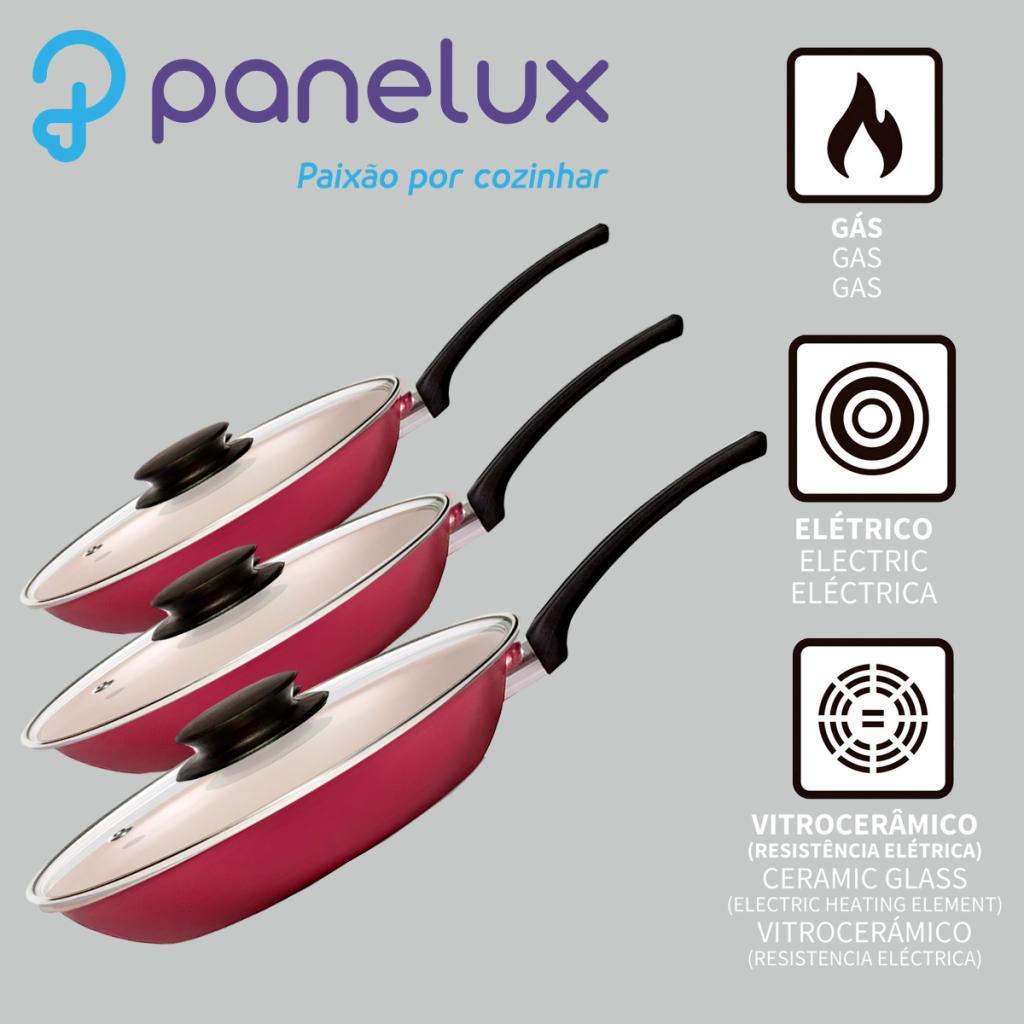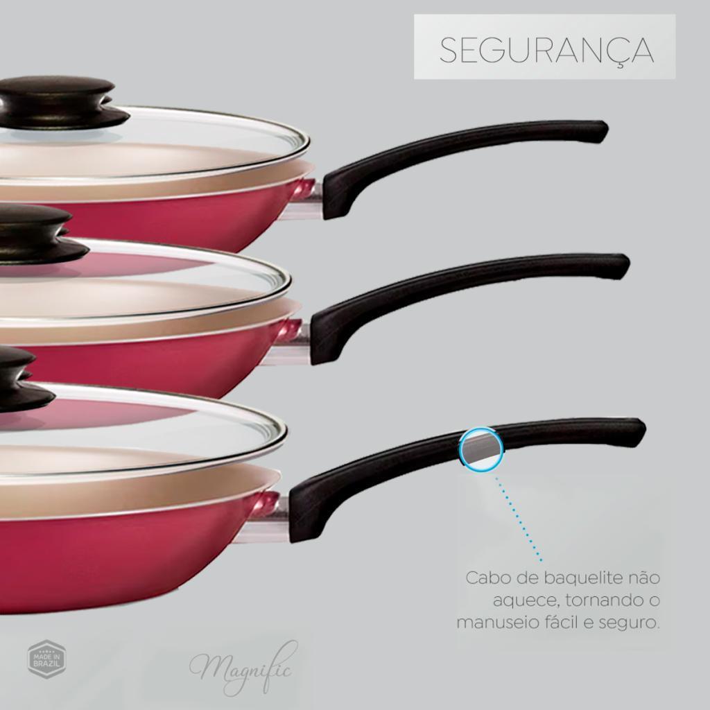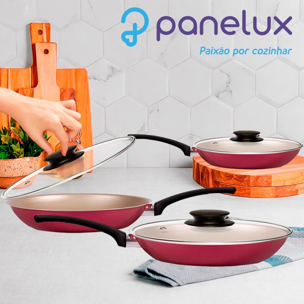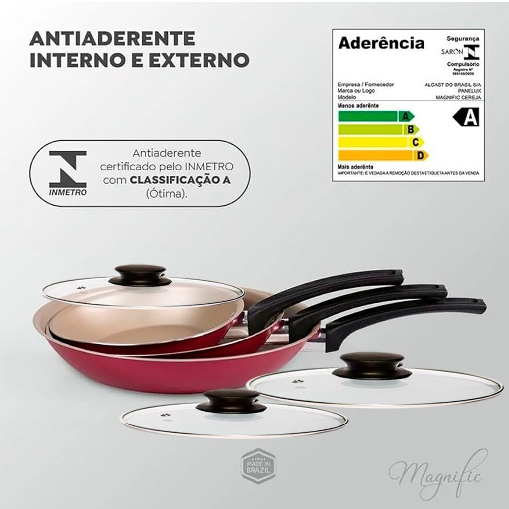 Kit de Frigideiras com Tampa 3 peças Panelux Magnific Cereja Antiaderente Bege
