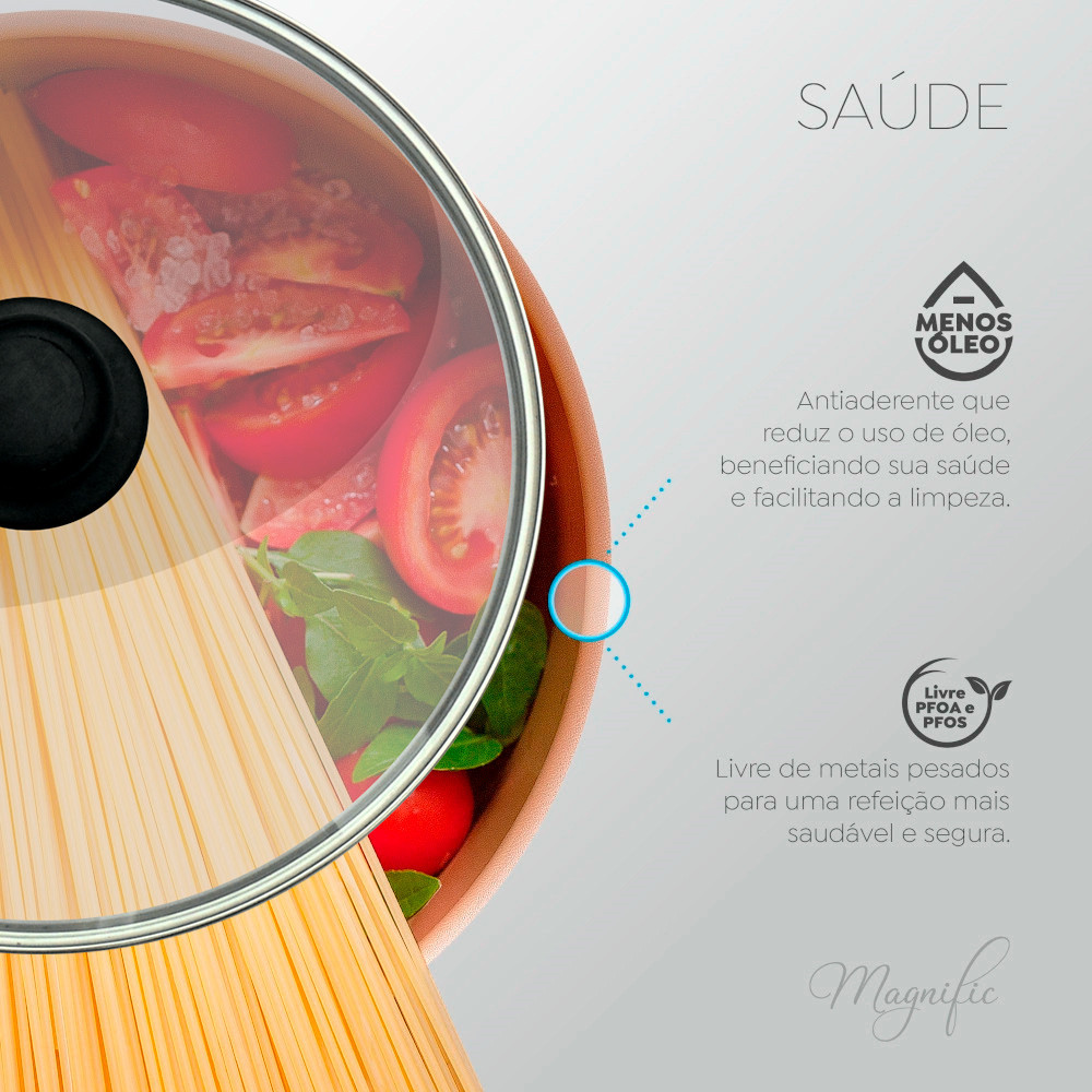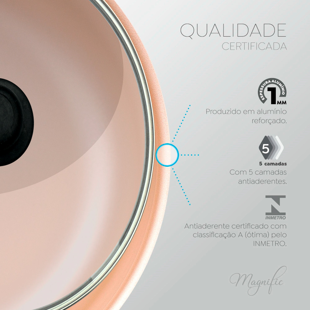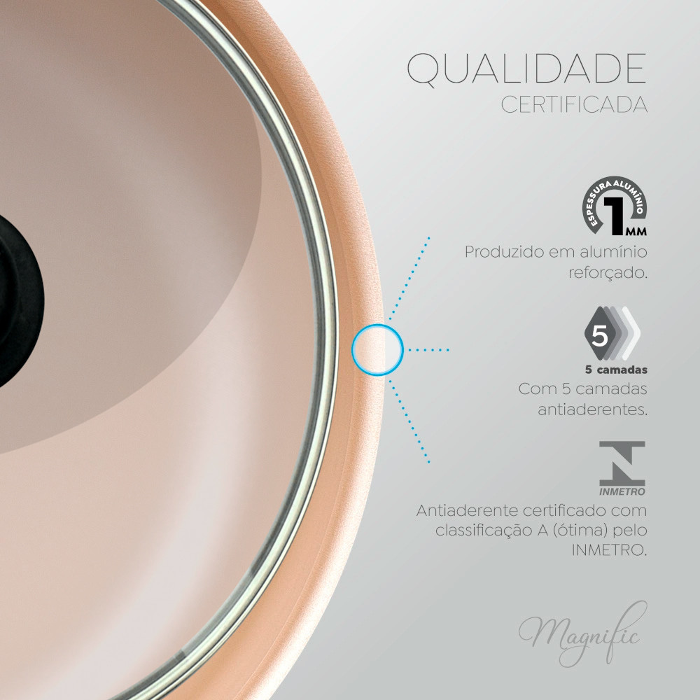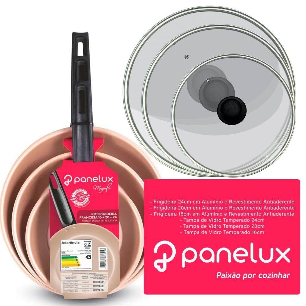 Kit de Frigideiras com Tampa 3 peças Panelux Magnific Cereja Antiaderente Bege