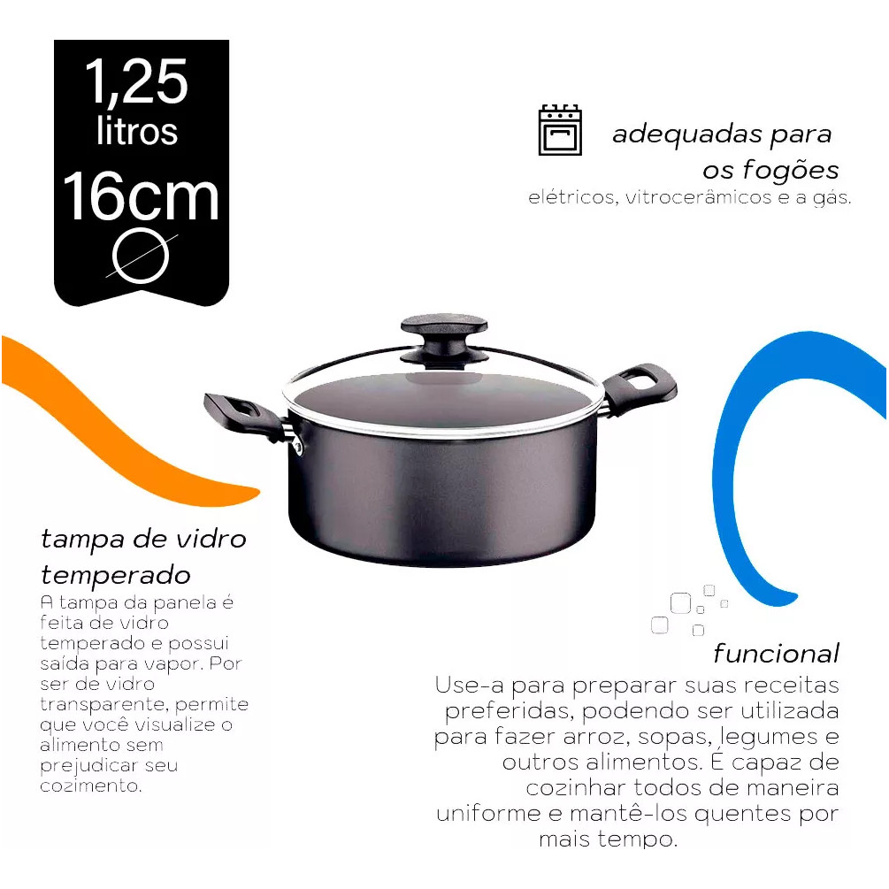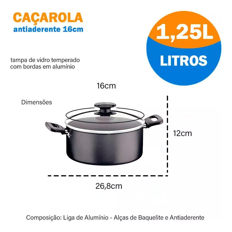 Caçarola 16 Cm Em Alumínio Com Antiaderente 1,25 Litros