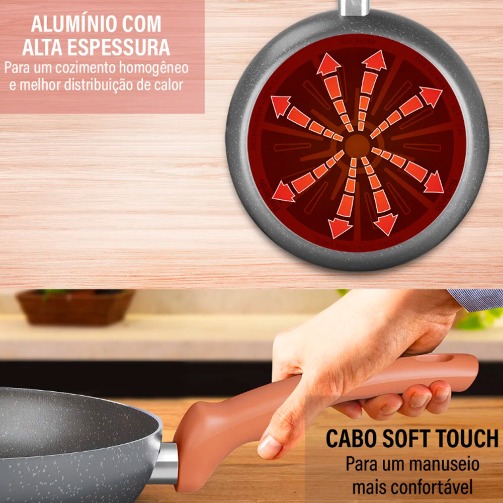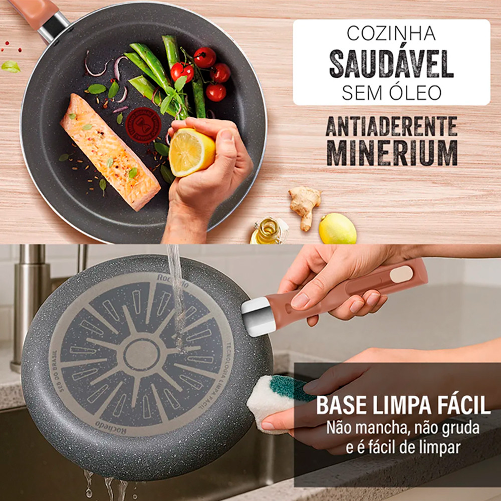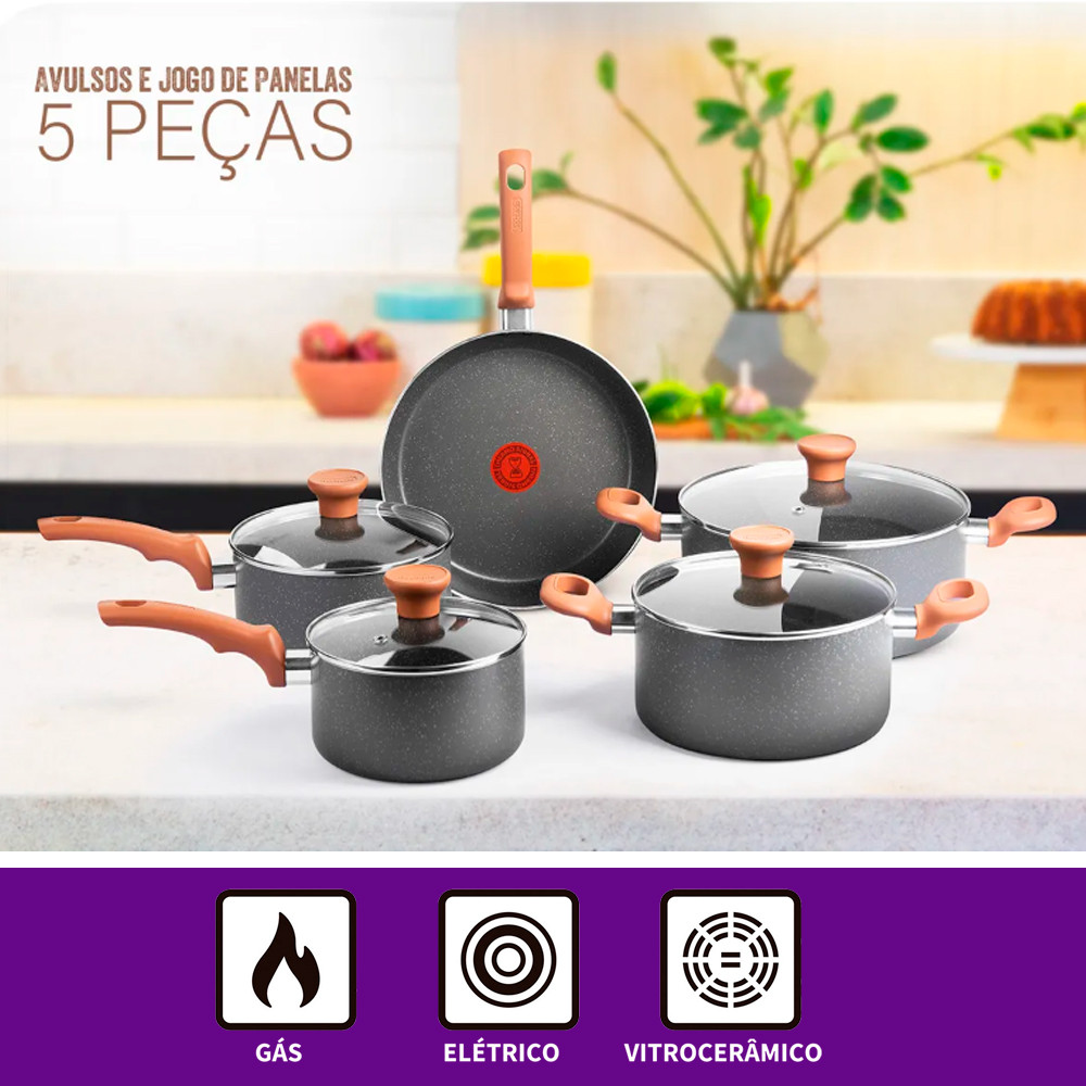 Jogo de Panelas Rochedo Natural Stone com Revestimento Antiaderente Minerium 5 Peças