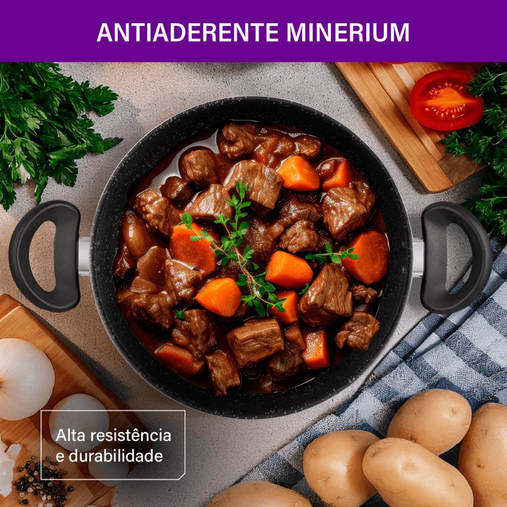 Jogo de Panelas Rochedo Stone Pro 5 Peças com Revestimento Antiaderente Minerium Preta