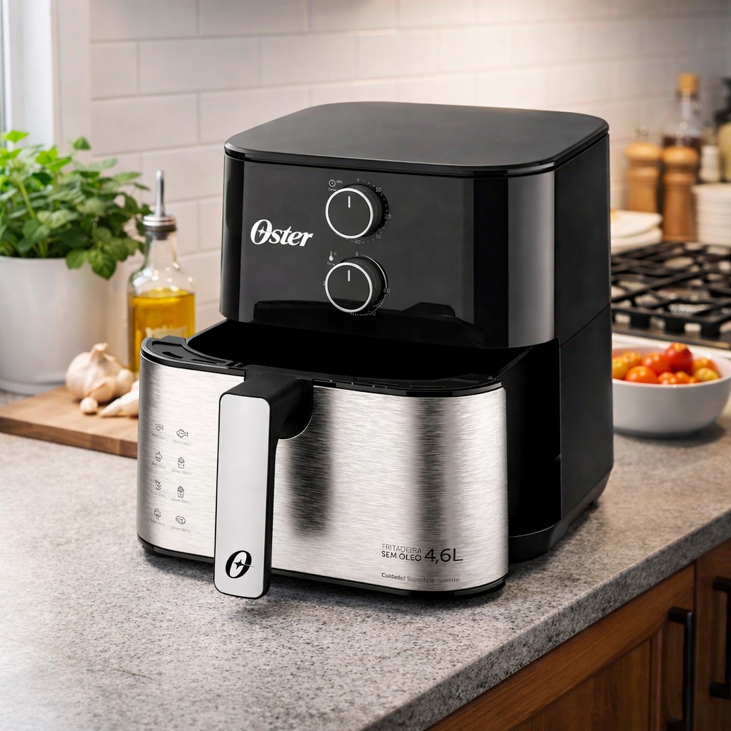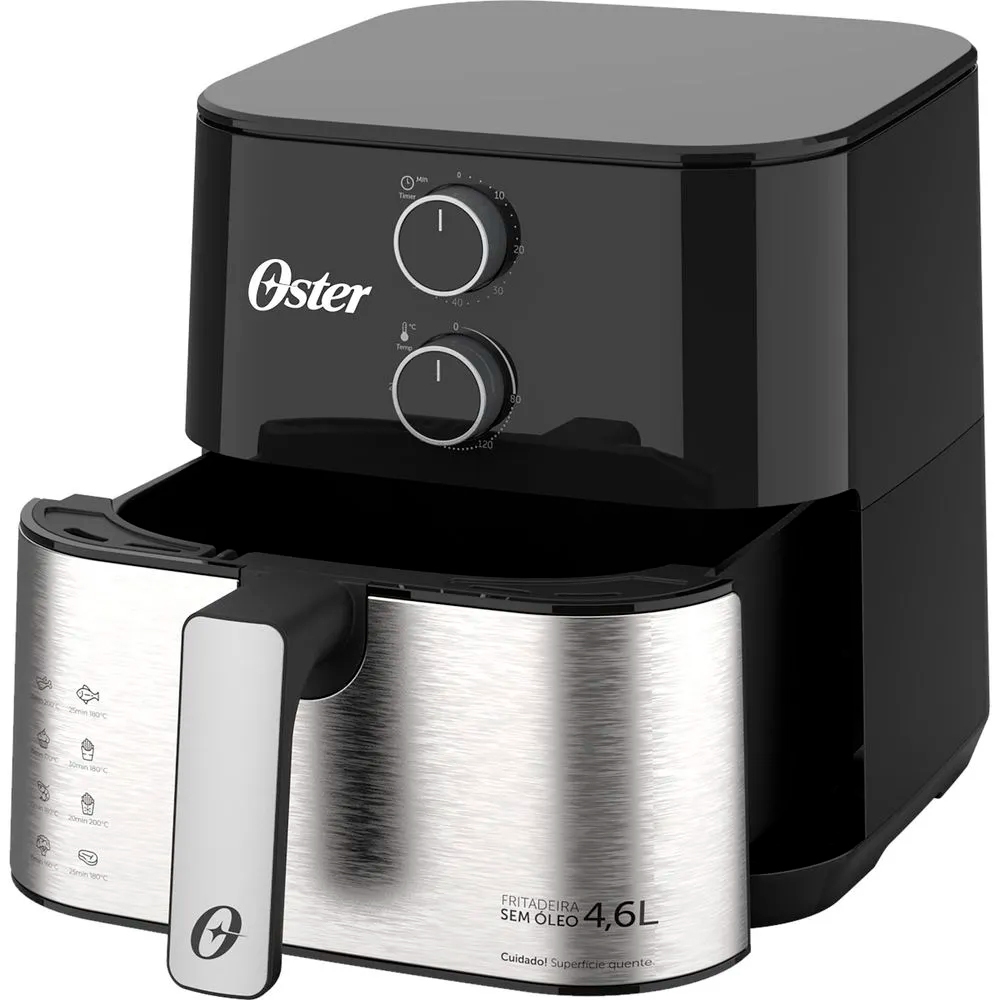 Fritadeira Air Fryer 4,6 Litros Oster OFRT520 Preta e Inox 127v Com Grelha Removível