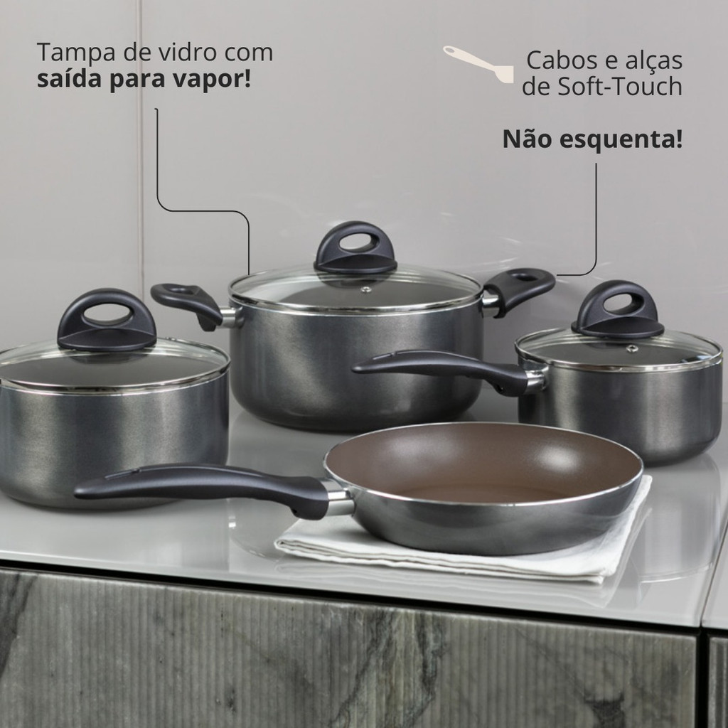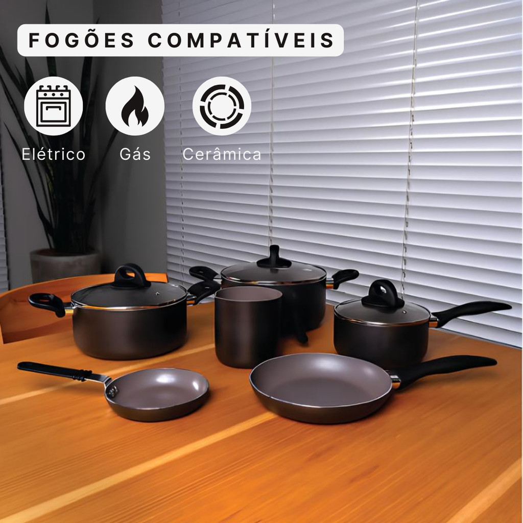 Jogo Panelas 6 Peças Brinox Smart Plus Com Revestimento Cerâmico Preto