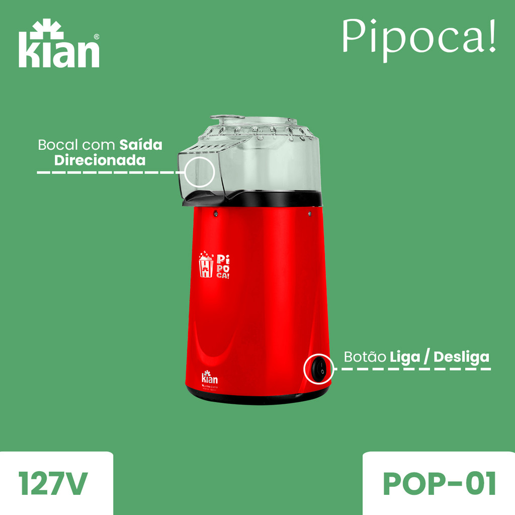 Pipoqueira Elétrica POP-01 Vermelha Kian - 127V