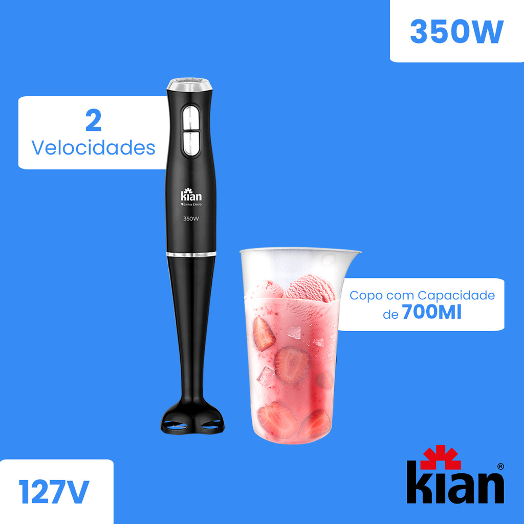 Mixer 2 Velocidades 350W Preto Com Copo 700ml Kian - 127V