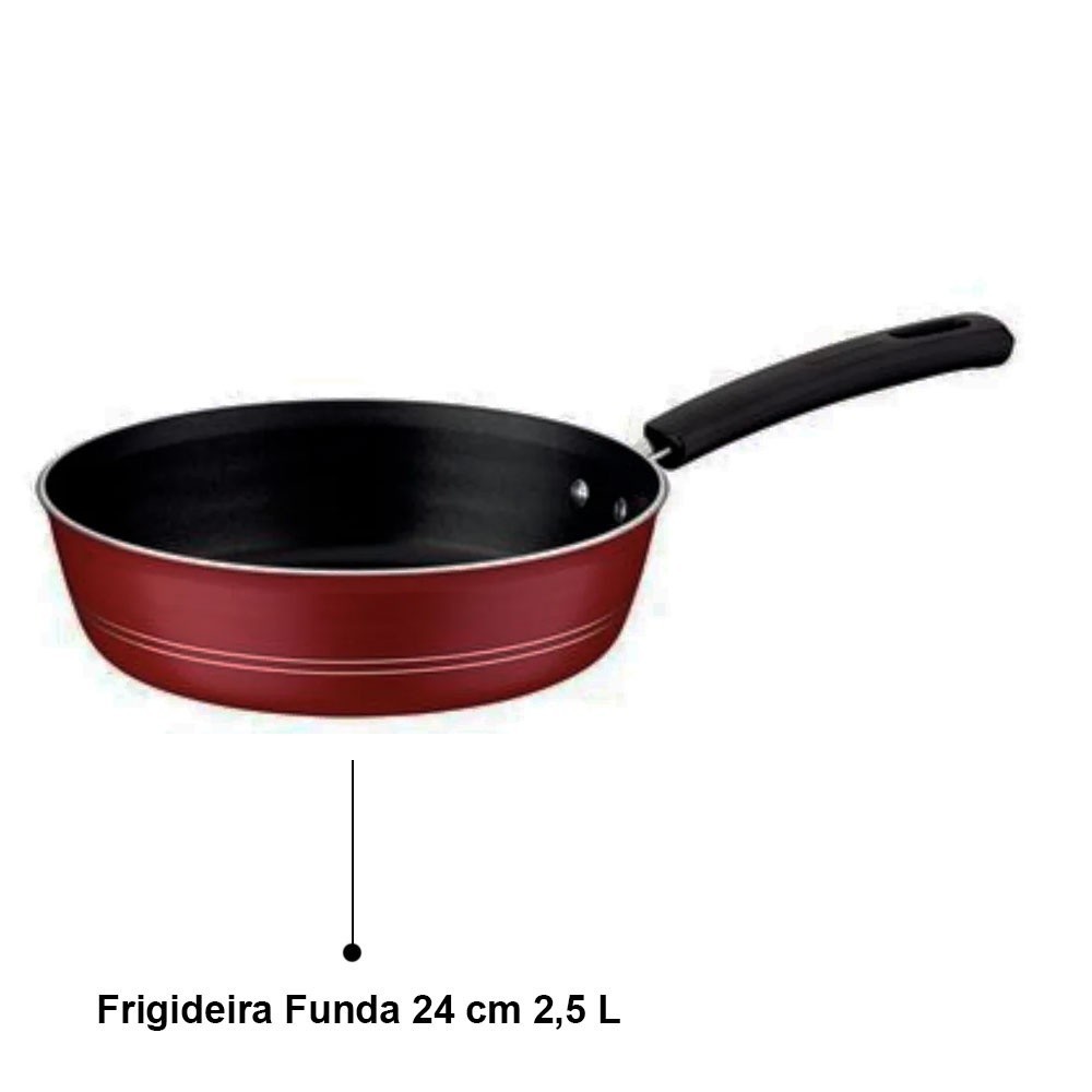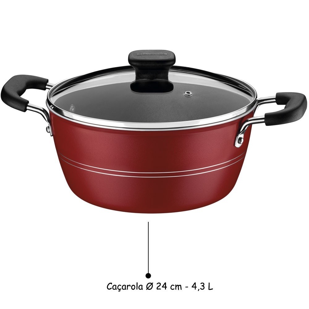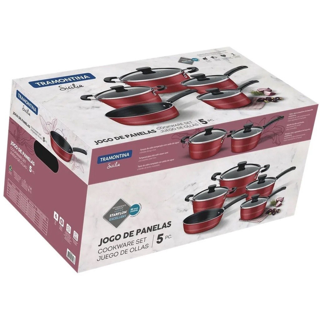 Jogo de Panelas Tramontina 5 Peças Sicília Vermelho e conjunto de tigelas inox 5 pçs