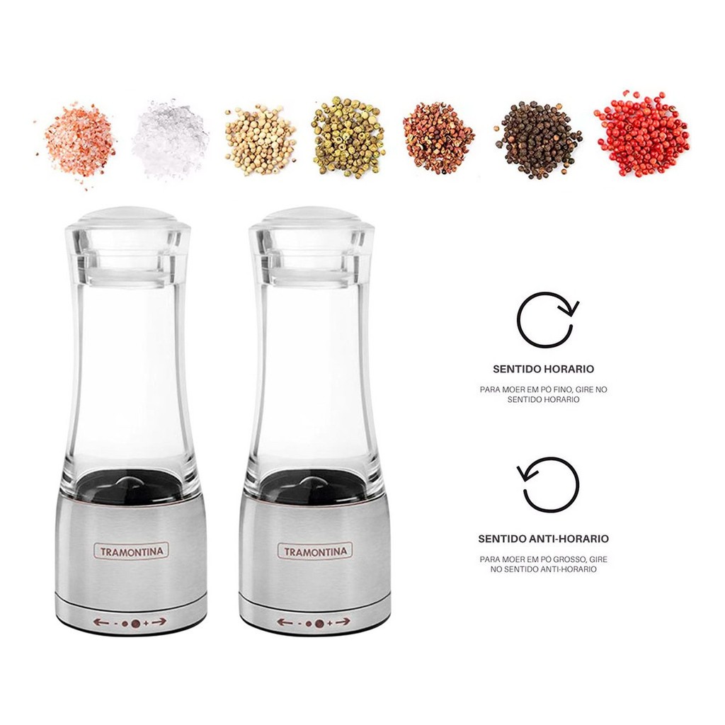 Jogo De Moedor De Sal E Pimenta Tramontina Aço Inox 2 Peças