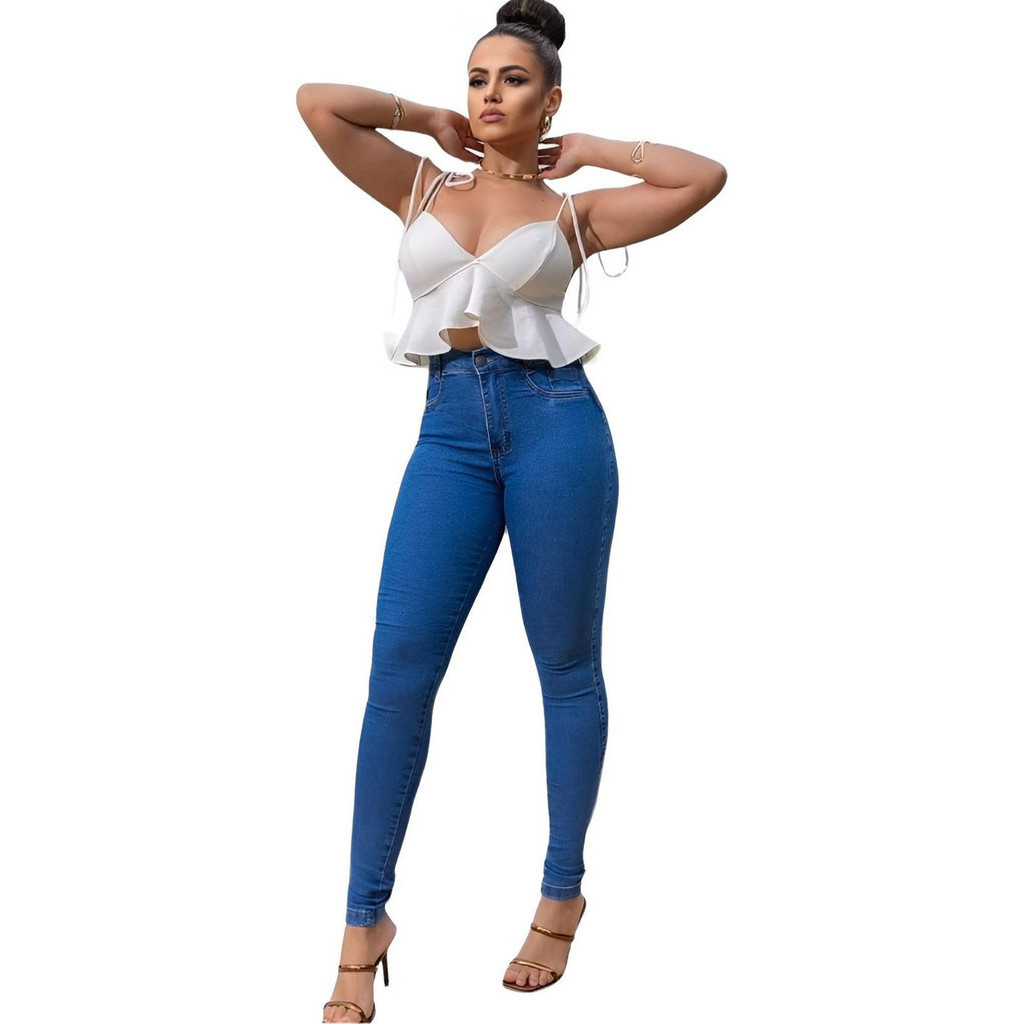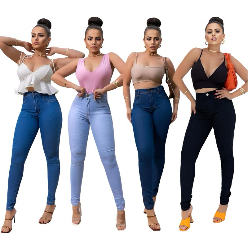 Kit 4 Calça Jeans Feminina Siknny Modeladora Cintura Alta