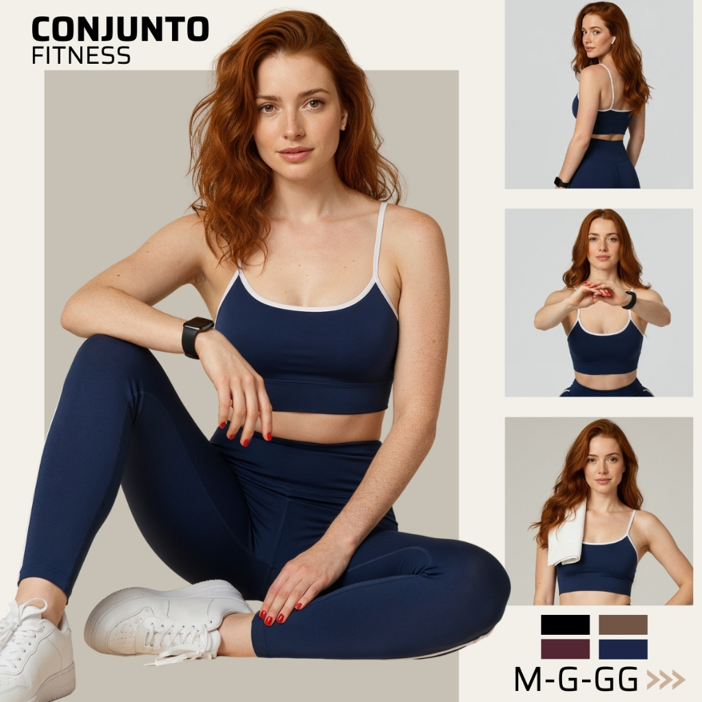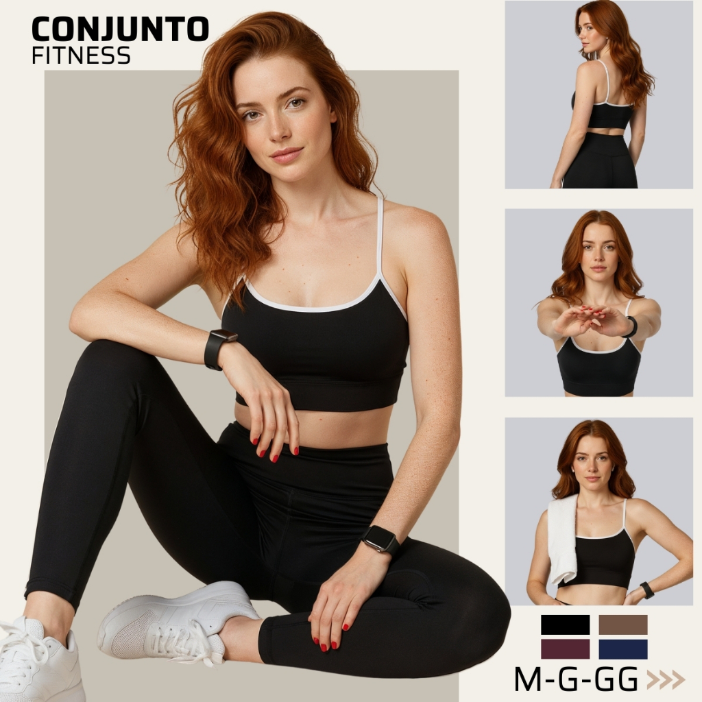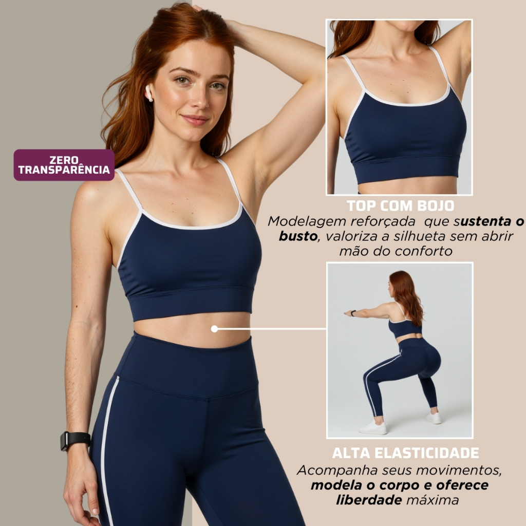 Conjunto Fitness Academia Legging Forrada Top Alça com Bojo Alta Compressão