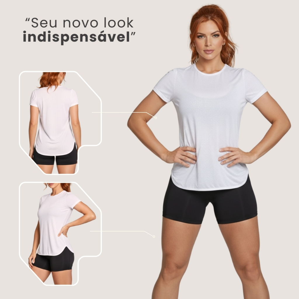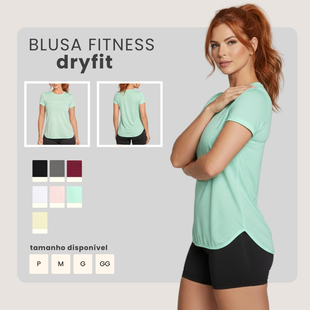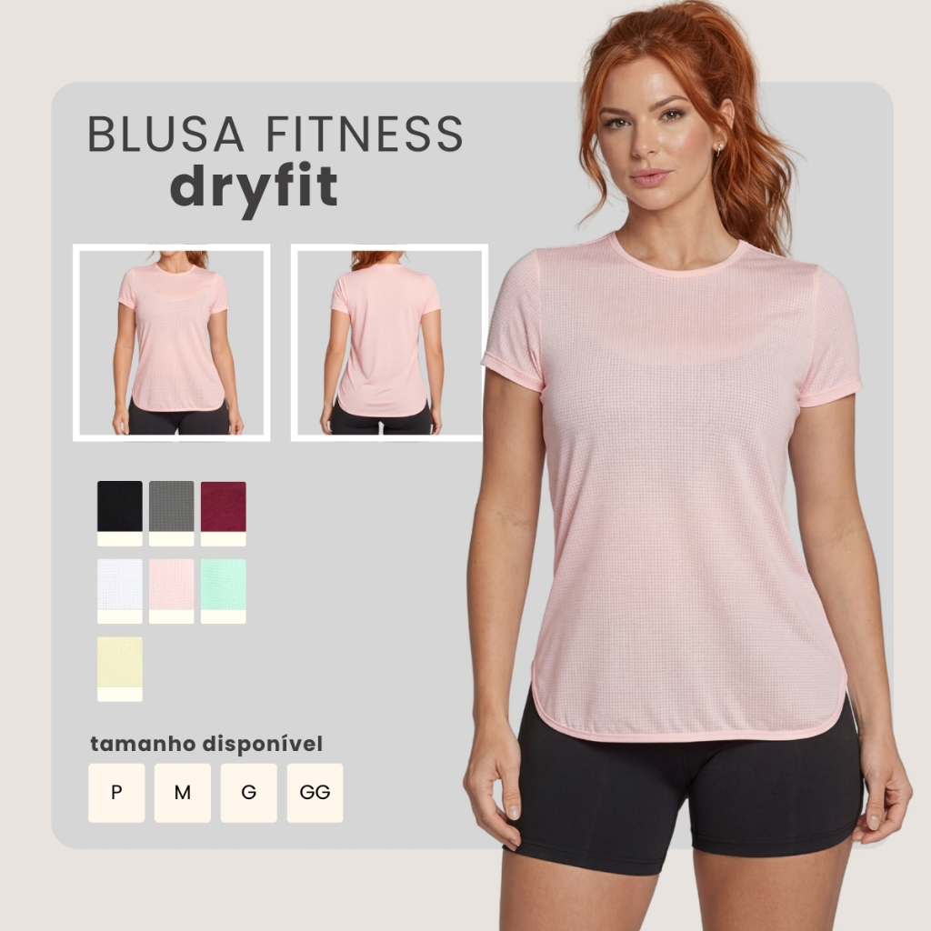 Blusa Feminina Fitness Dry Fit Manga Curta Respirável Tapa Bumbum P ao GG