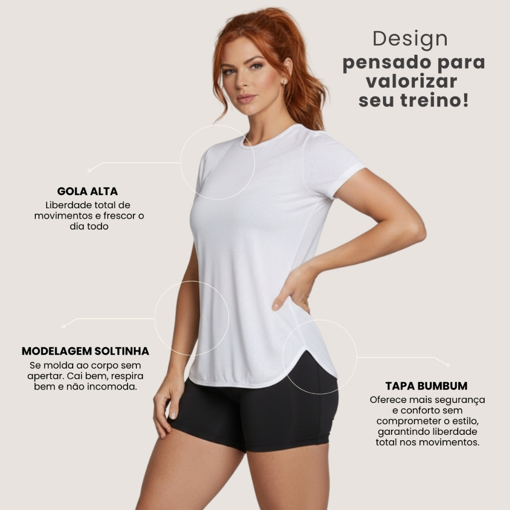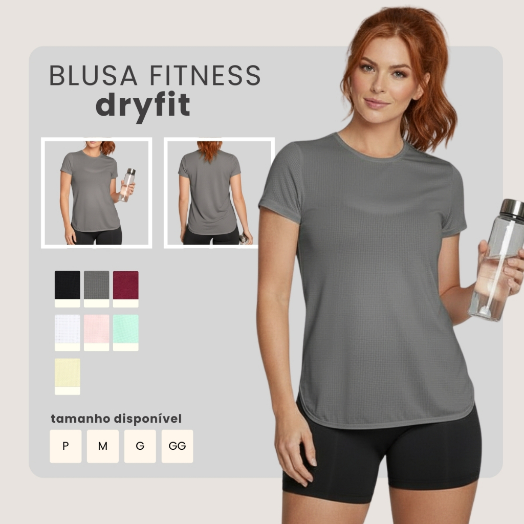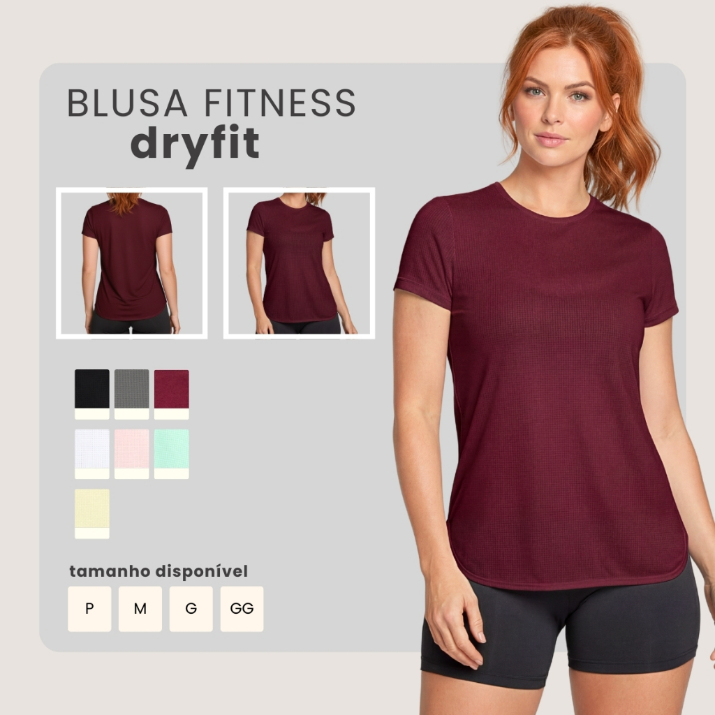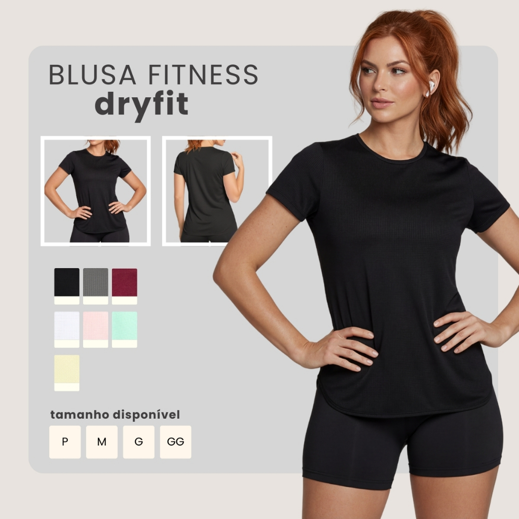 Blusa Feminina Fitness Dry Fit Manga Curta Respirável Tapa Bumbum P ao GG