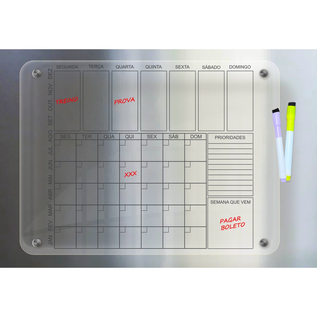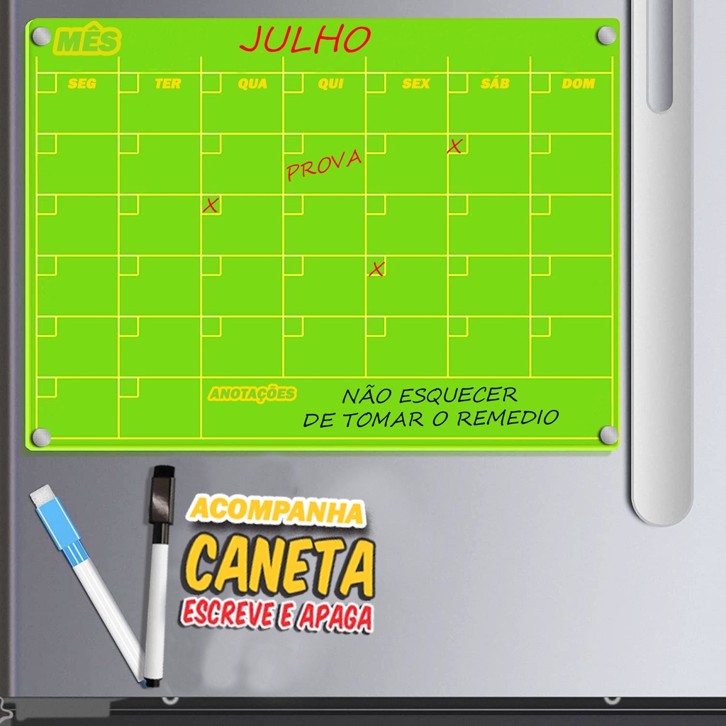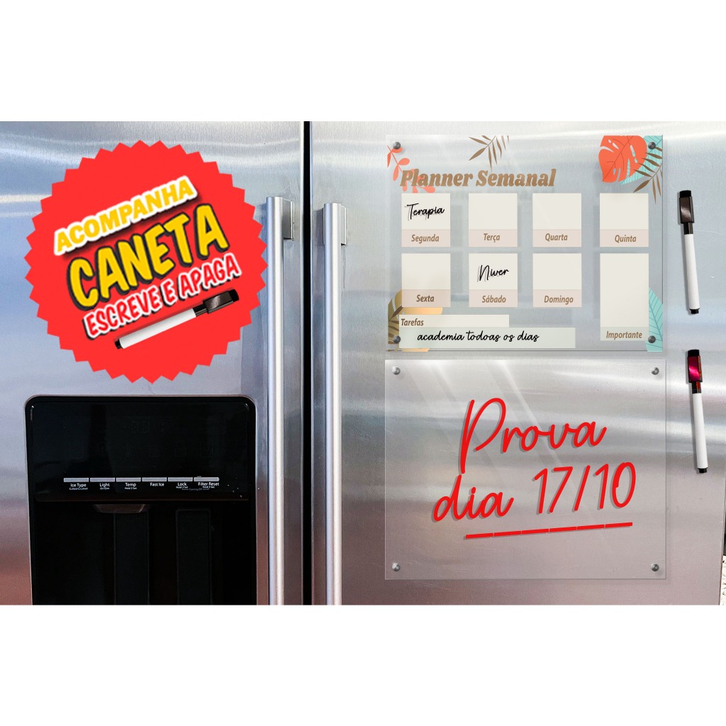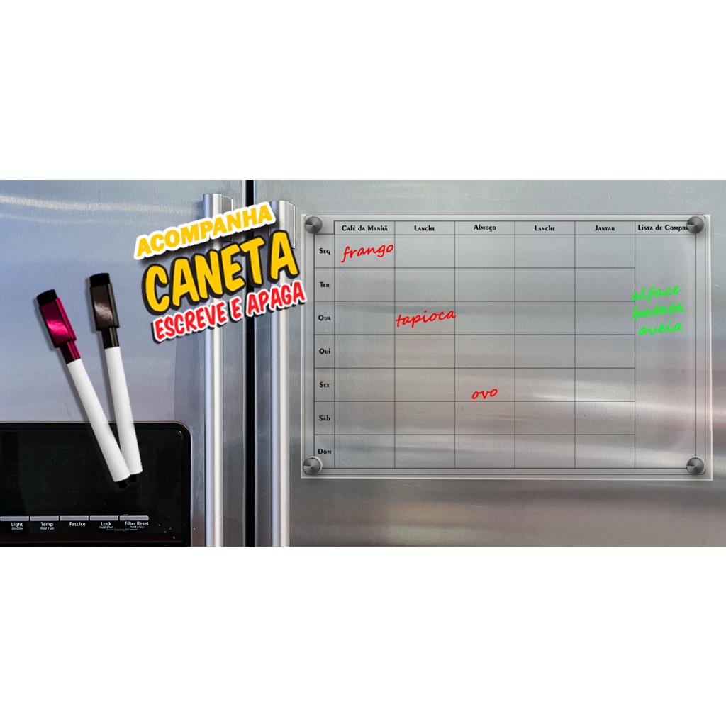 Lousa Magnética Planner Mensal semanal dieta Anotações Imã de Geladeira Anotação C/ Caneta escreve e apaga