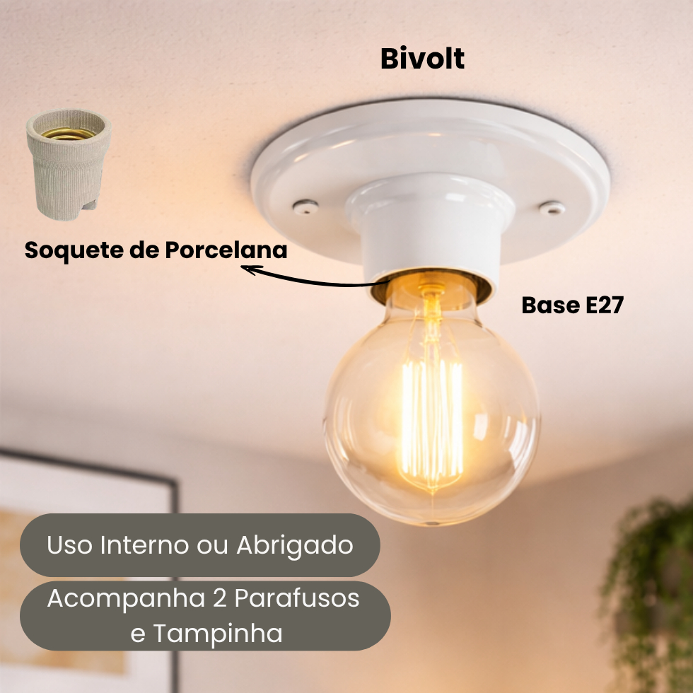 Kit 05 Plafon Com Bocal Porcelana 100w E27