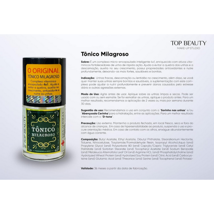 Esmalte Tratamento Top Beauty 7ml SOS Unhas - Tonico Milagroso Top Beauty